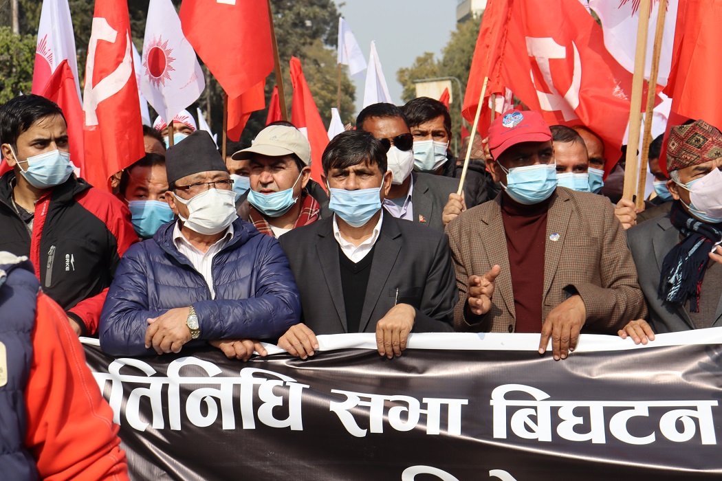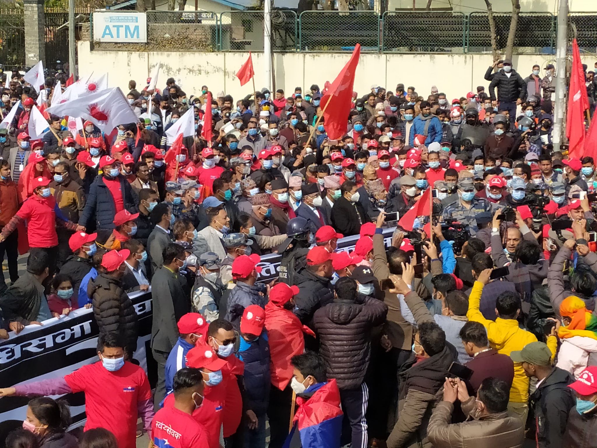 काठमाण्डु – नेपाल कम्युनिष्ट पार्टी प्रचण्ड-नेपाल समूहले शुक्रबार काठमाण्डुमा शक्ति प्रदर्शन गरेका छन् । प्रतिनिधिसभा विघटन असंवैधानिक र अलोकतान्त्रिक भन्दै आन्दोलनरत नेकपा प्रचण्ड–माधव पक्षले शुक्रबार काठमाण्डुमा शक्ति प्रदर्शन गरेका हुन् । त्यसका लागि बिहान ११ बजे काठमाण्डु र ललितपुरका विभिन्न ९ स्थान (आर्क) बाट जुलुस निकालिएकाे थियाे ।