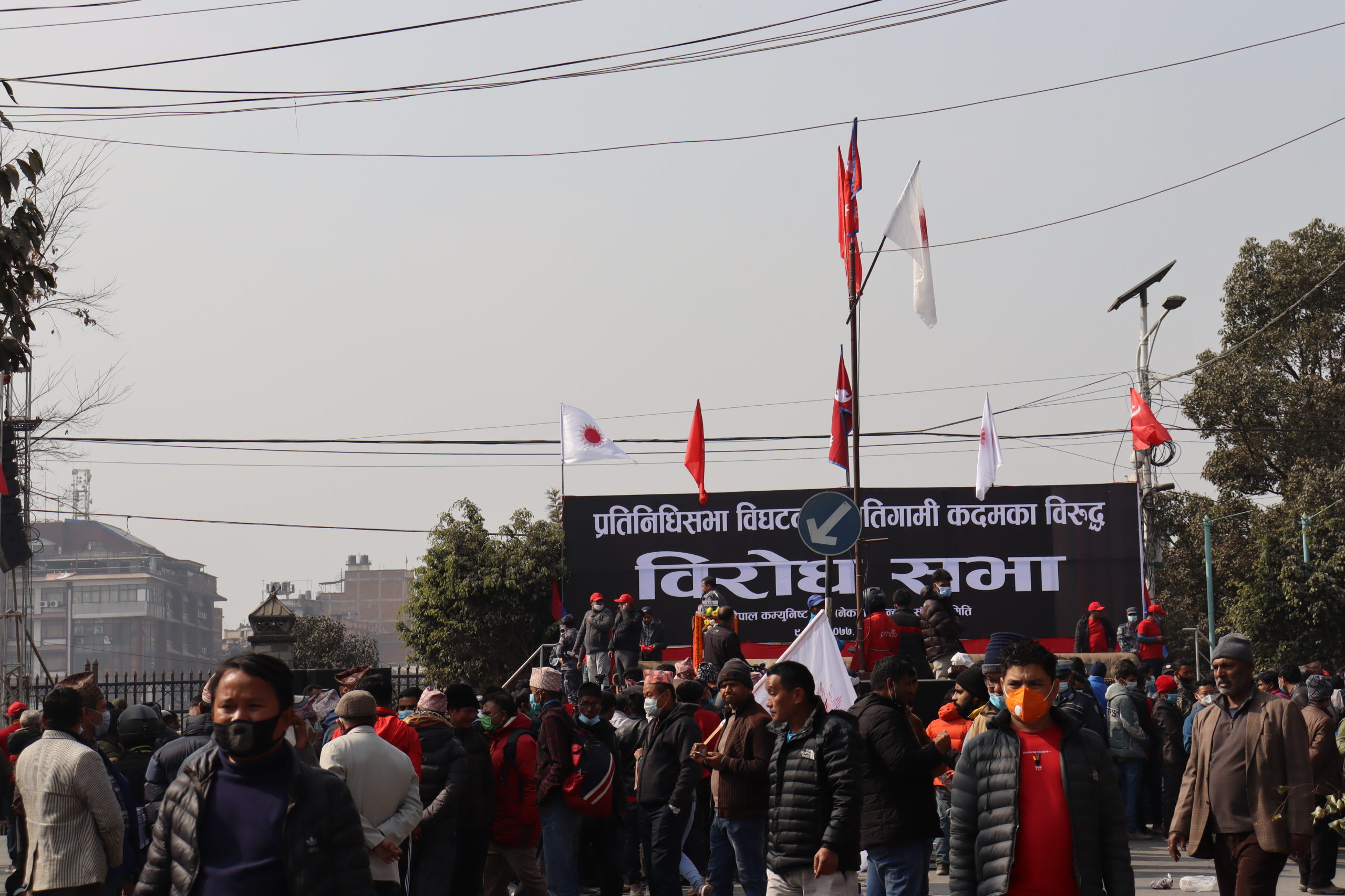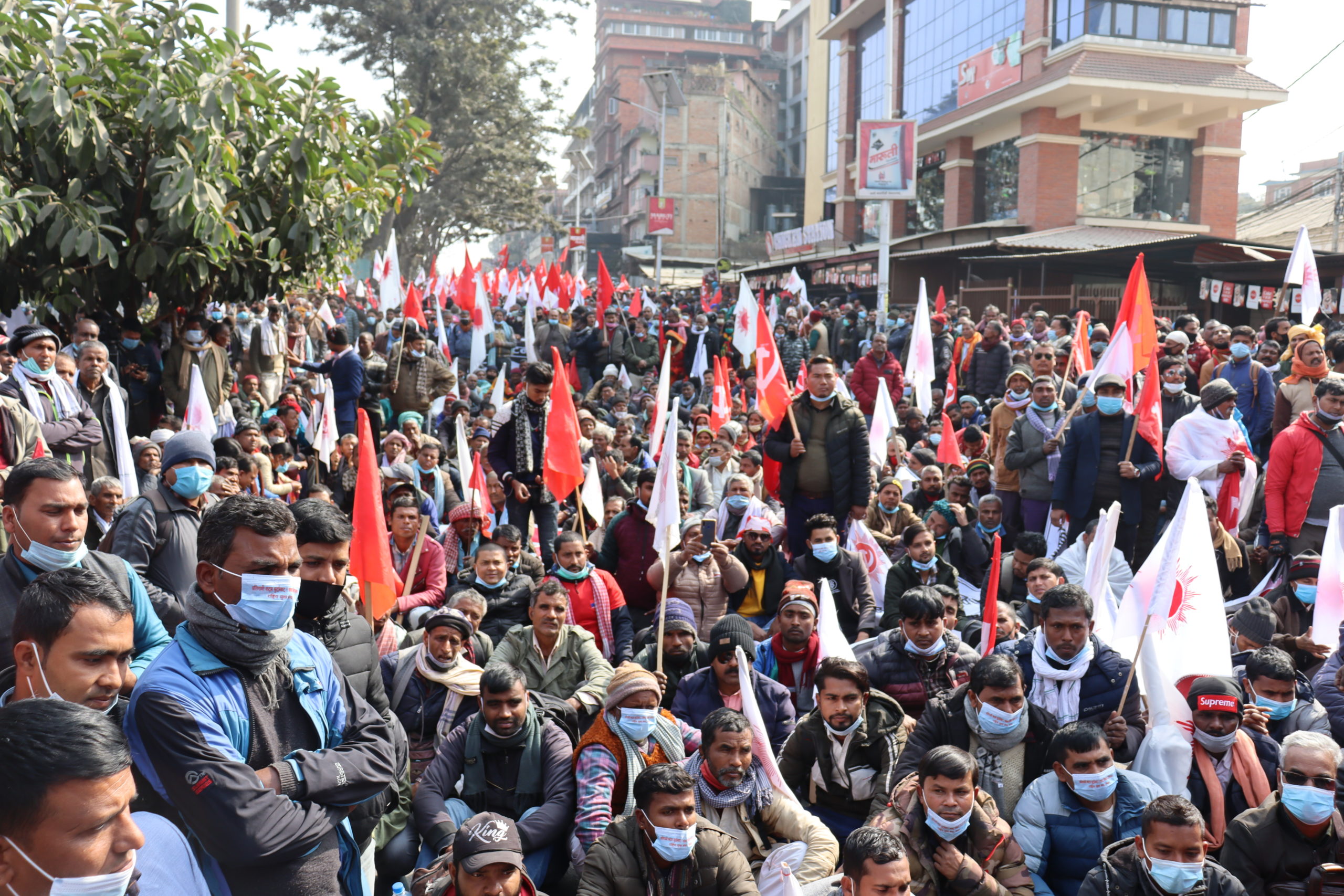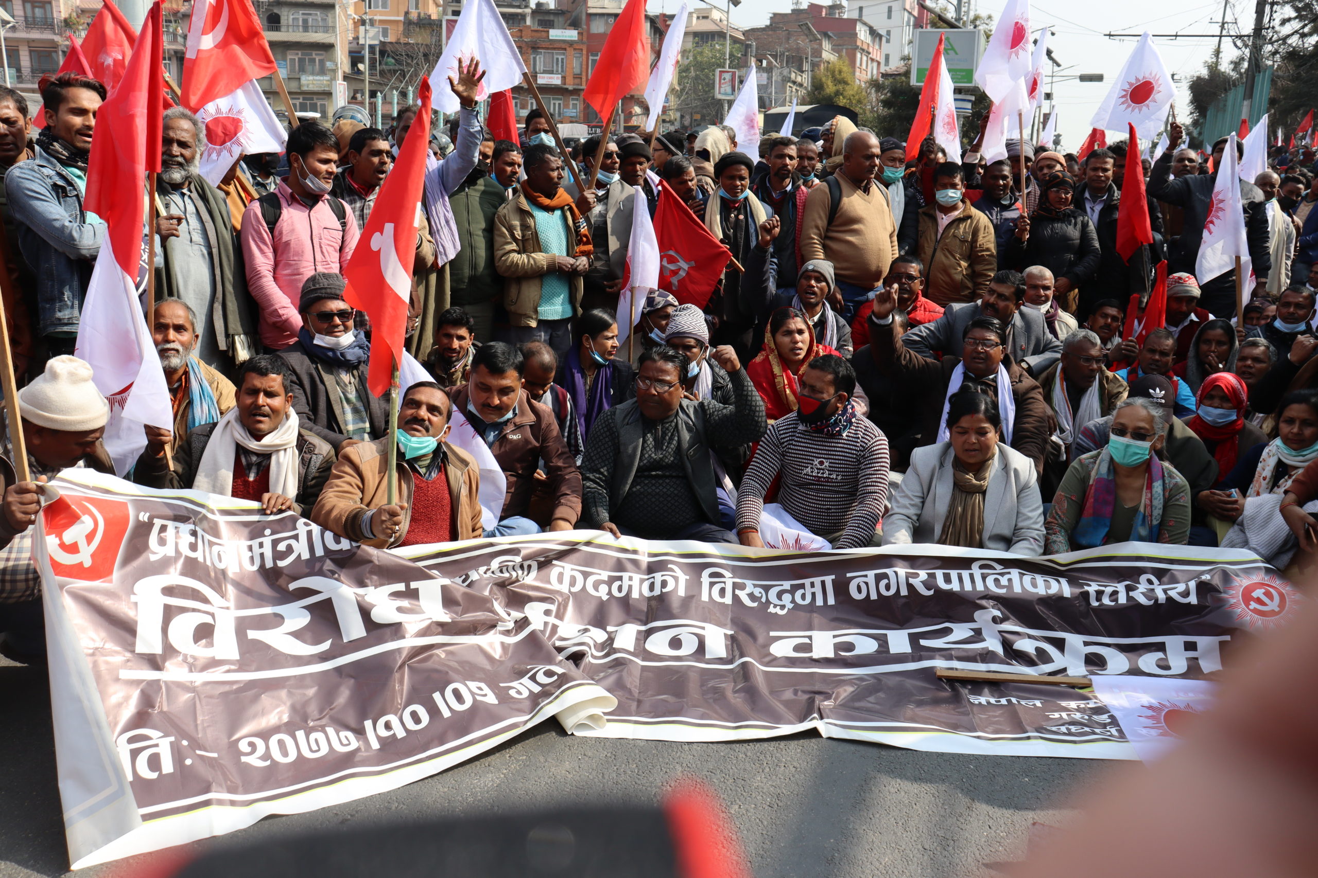 माइतीघर, डिल्लीबजार, लैनचौर, त्रिपुरेश्वर, कुपण्डोल, प्रदर्शनीमार्ग, त्रिचन्द्र कलेज, शान्तिबाटिका लगायतका स्थानबाट निस्केको जुलुस एकीकृत हुँदै रत्नपार्क, बागबजार, पुतलीसडक, पद्मोदय मोड हुँदै भृकुटीमण्डपमा पुगिसकेको छ ।