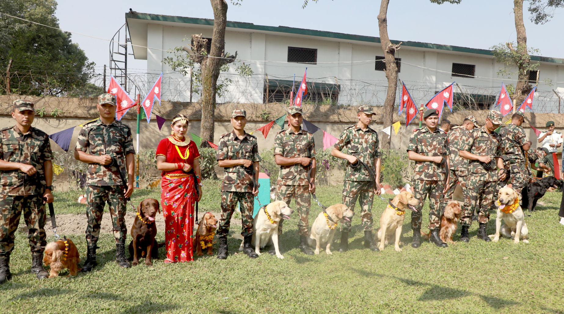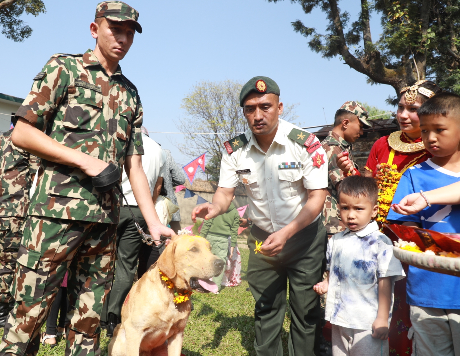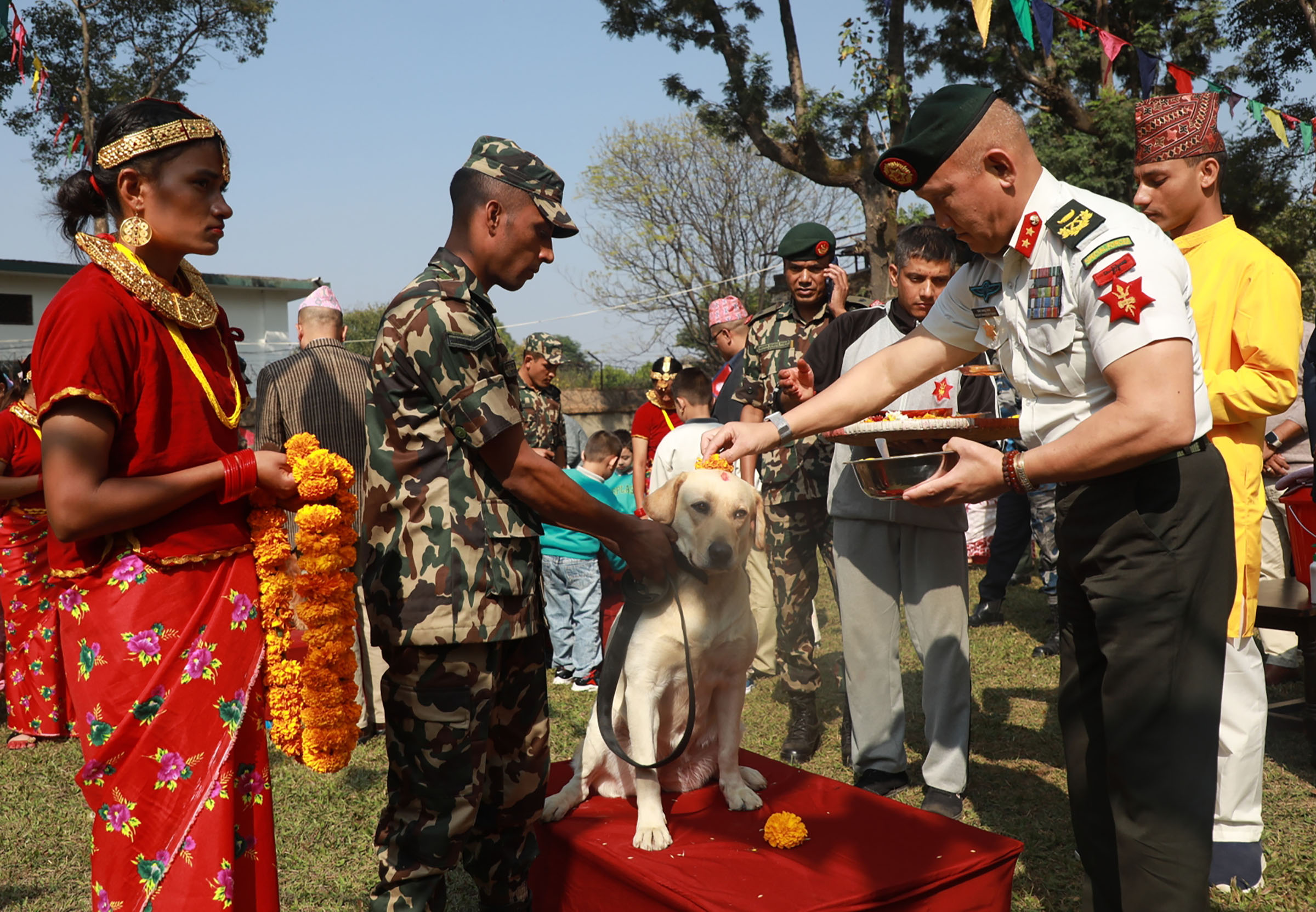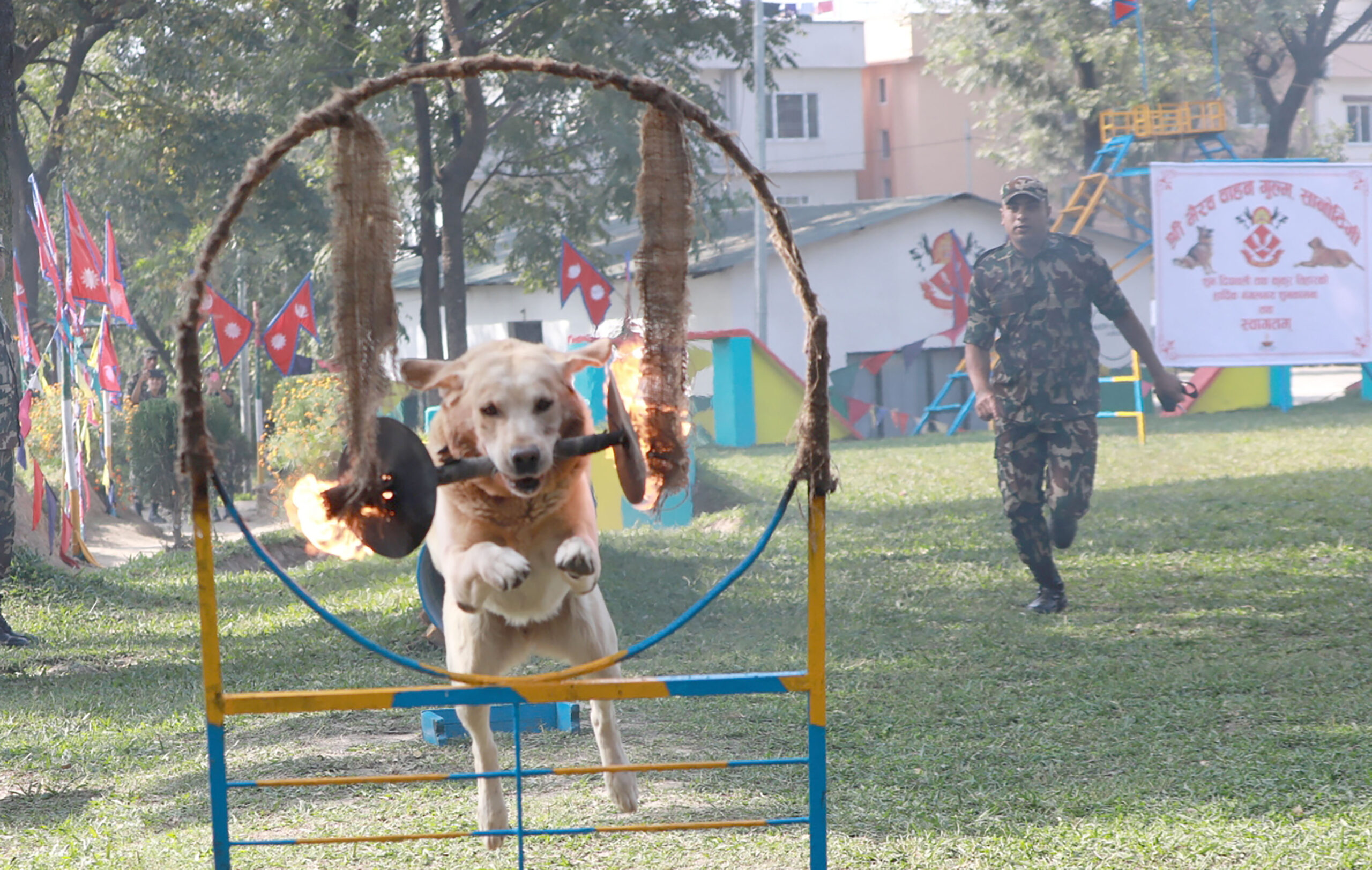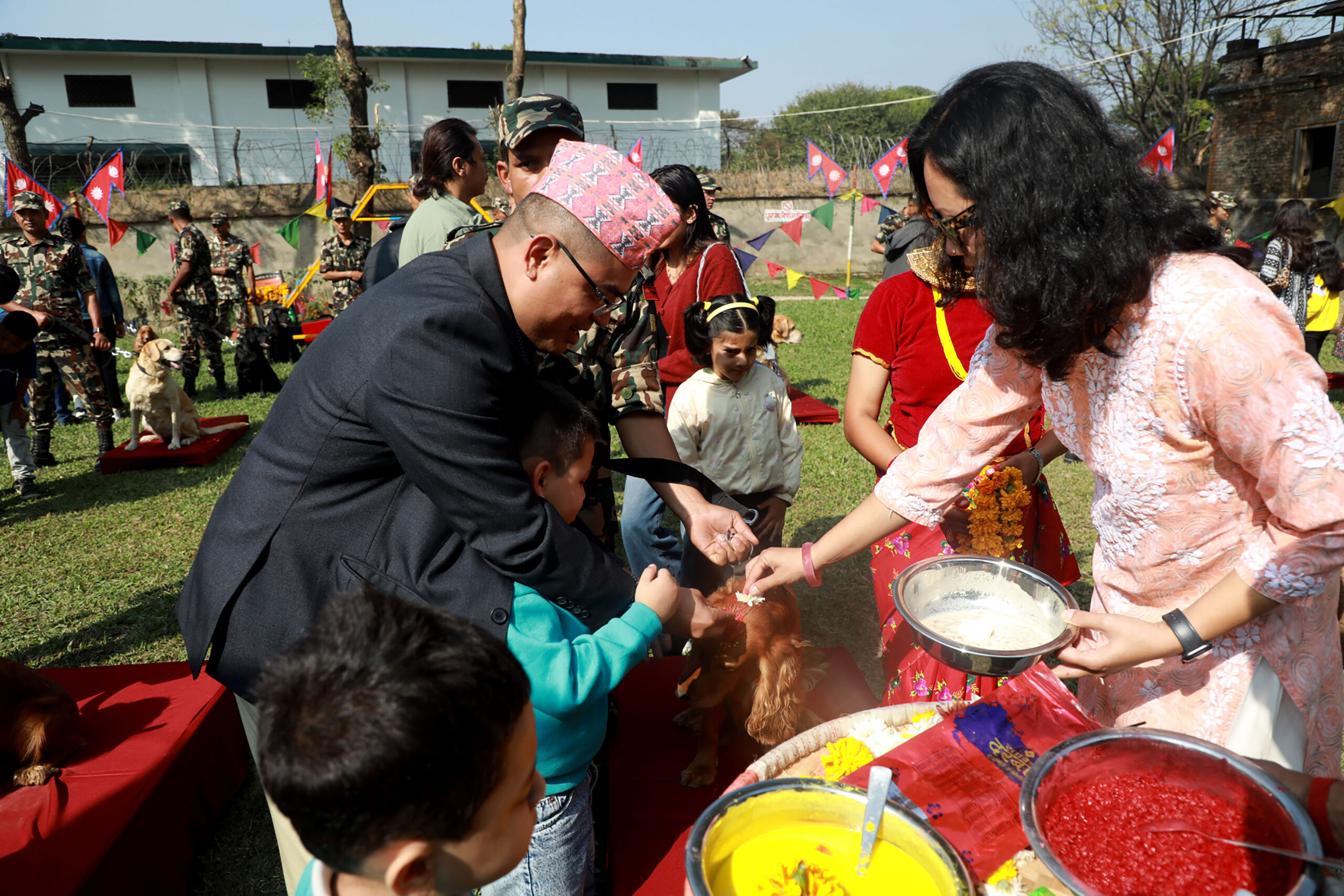 आज यम पञ्चक अर्थात कुकुर पूजाको दिन । भक्तपुरको मध्यपुर थिमि नगरपालिका–२, सानोठिमीस्थित भैरवबहान गुल्ममा तालिम प्राप्त कुकुरबाट प्रमुख अतिथि, अतिथिहरूलाई फूल चढाएर सल्लाम गरेको कला प्रदर्शन गर्दै ।