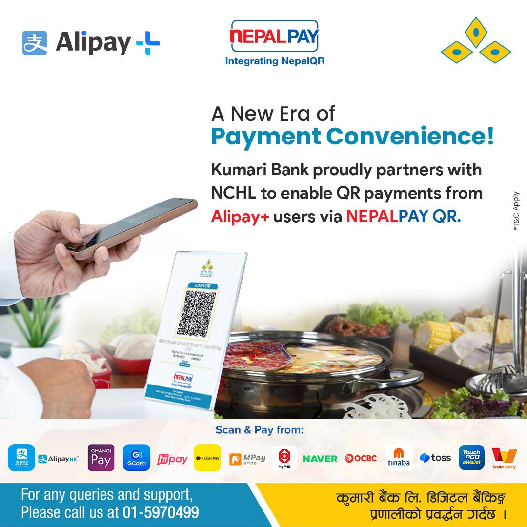यो सेवामार्फत अलि पे प्रयोगकर्ताले कुमारी बैंकको नेपाल क्यूआर रहेका व्यवसायहरूमा सहज र सुरक्षित रूपमा भुक्तानीगर्न सक्नेछन ।