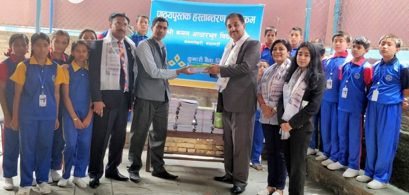 काठमाडौं – कुमारी बैंकले काठमाडौं महानगरपालिका १ कमलपोखरीस्थित श्री कमल आधारभूत विद्यालयमा कक्षा १ देखि कक्षा ८ सम्म अध्ययनरत विपन्नवर्गका विद्यार्थीहरूलाई पाठ्यपुस्तक वितरण गरेको छ ।