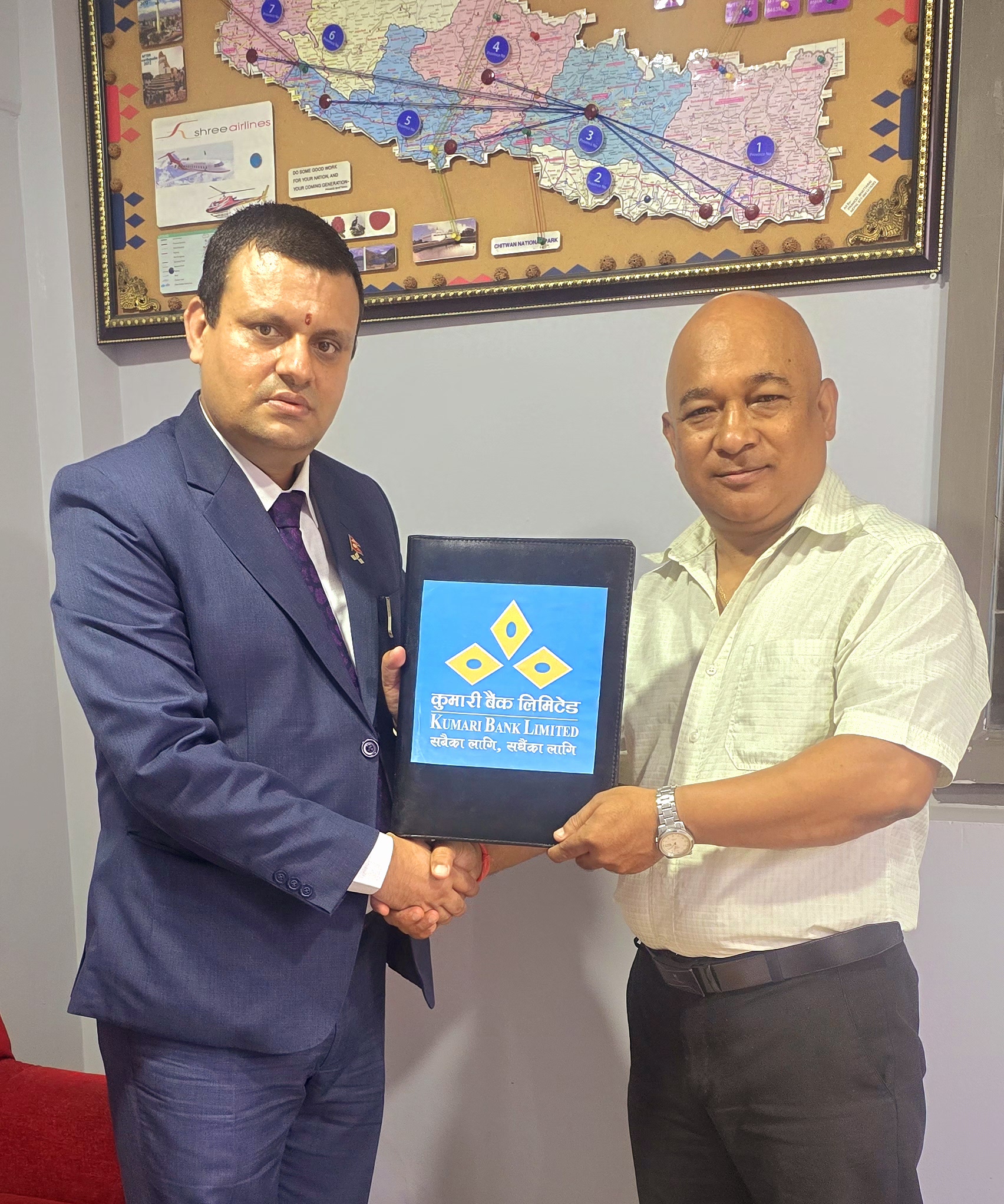 कुमारी बैंक लिमिटेड र श्री एयरलाइन्सबीच कुमारी बैंक लिमिटेडका ग्राहक र उनीहरूको परिवारका सदस्यहरूलाई श्री एयरलाइन्स बाट यात्रा गर्दा लाग्ने टिकट शुल्कमा आर्कषक छुट प्रदान गर्ने सम्झौता भएको हाे ।