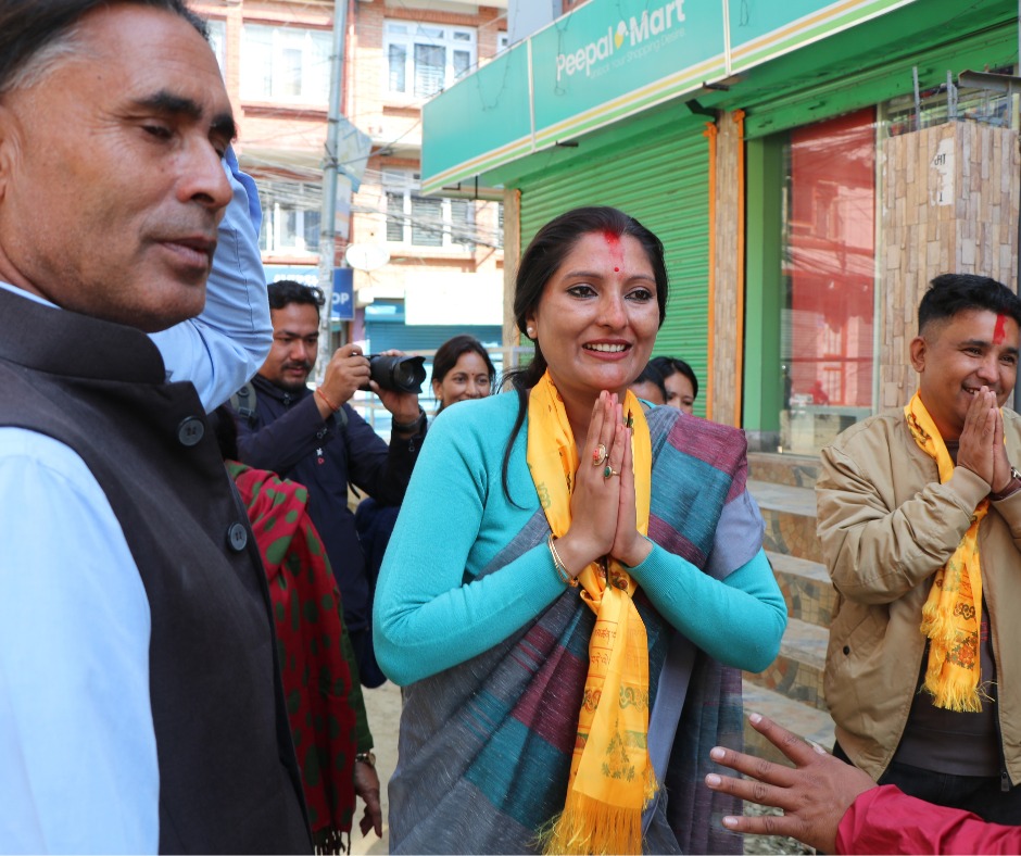 काठमाण्डु क्षेत्र नं २ का मतदातासँग भेटघाट तथा भलाकु्ुसारी कार्यक्रममा ‘रुख’ चिन्हमा मतदान गरिरहेका मतदाताले सिद्धान्त नमिल्ने पार्टीसँग गठबन्धन गरेर माओबादिलाई भोट हाल्न लगाइनुु आफैमा दुखद् भएको बताएकी छिन् । उनले नेपाली कांग्रेस क्षेत्र नं २ का कार्यकर्ता तथा मतदाताहरुलाई तपाईंहरुको सिद्धान्तसँग नजिक रहेको राप्रपाको ‘हलो’ चिन्हमा भोट हाल्न आव्हान गरेकी छिन् ।