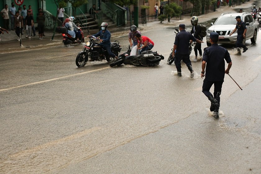 सडकमा बगेको पानीले यातायातसमेत प्रभावित भएको छ ।