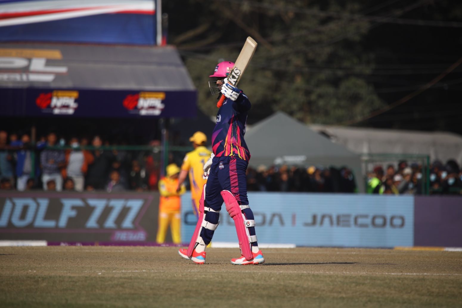 सिरिजको पहिलो खेलमा विराटनगर किंग्सविरुद्ध ७५ रन जोडेका उनले आजको अन्तिम खेलमा  ८७ रन जोडे ।