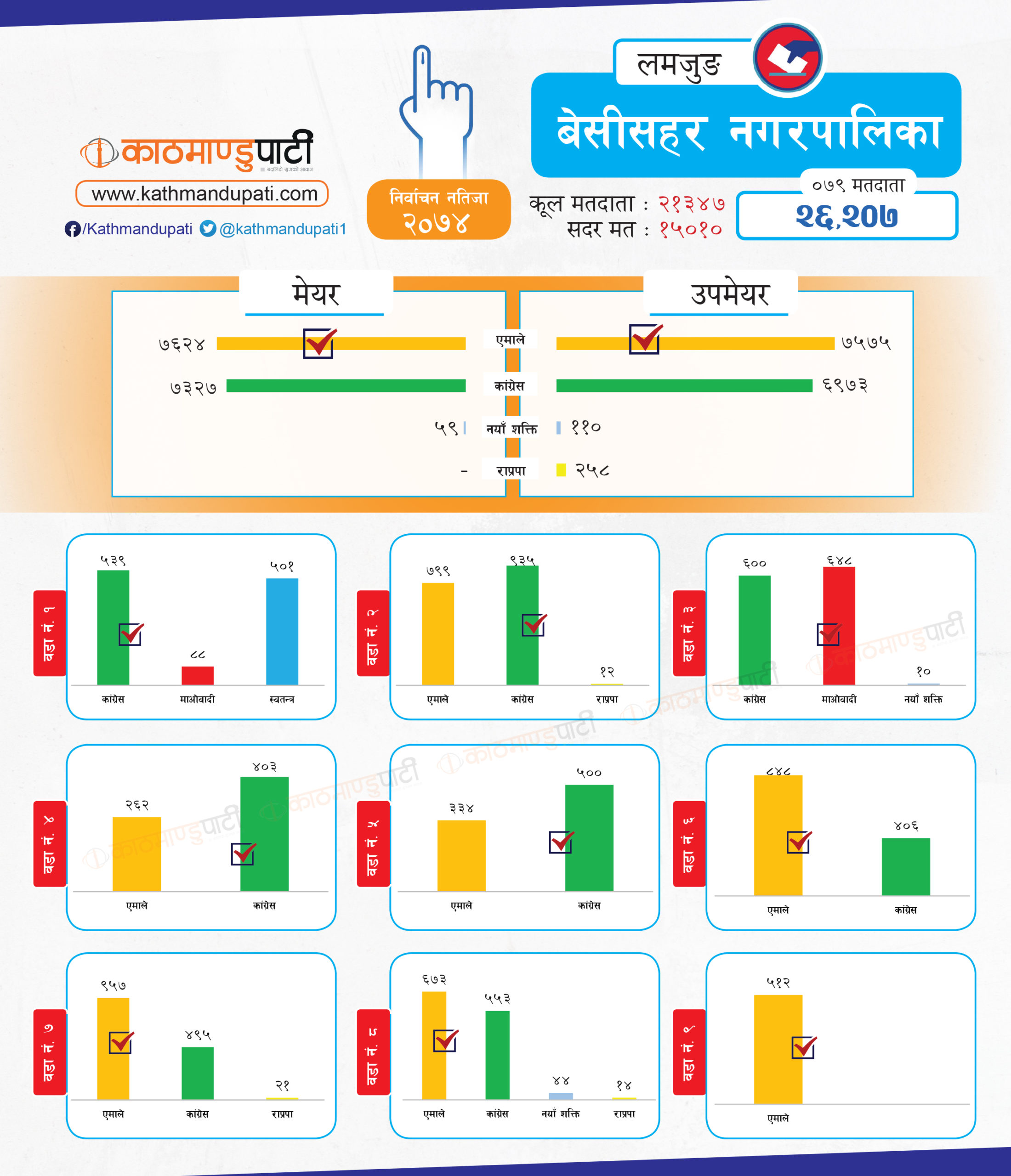 मनोनयनअघि पाँचदलीय तालमेल हुने भने पनि जसपा र एकीकृत समाजवादीले छुट्टै उम्मेदवारी दर्ता गराएका छन् । ०७४ मा एमालेले बेसीसहर, राइनास, सुन्दरबजार नगरपालिकासहित क्व्होलासोथर र मस्र्याङ्दी गाउँपालिका जितेको थियो । बेसीसहर नगरपालिकामा एमाले उम्मेदवार ७ हजार ६ सय २४ मत ल्याएर विजयी भएका थिए भने कांग्रेस उम्मेदवारले ७ हजार ३ सय २७ मत ल्याए । राइनास नगरपालिका प्रमुख पदमा एमालेका उम्मेदवारले ४ हजार २ सय ५७ मत ल्याएका थिए भने कांग्रेसका उम्मेदवारले ४ हजार ८२ मत ल्याएका थिए । उपप्रमुख कांग्रेसले जितेको थियो ।