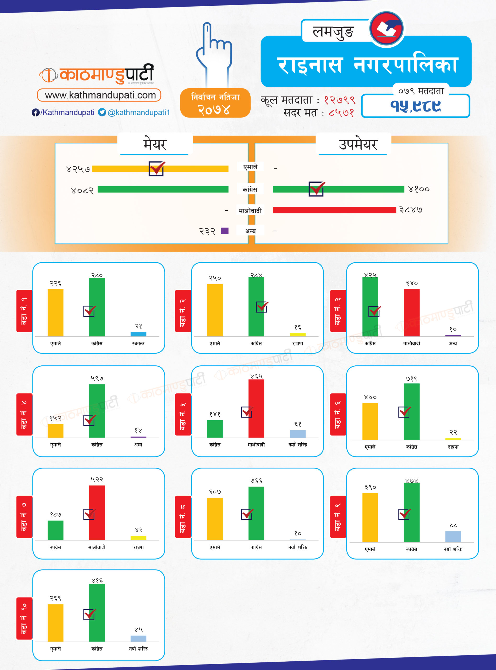 तालमेल हुँदा तीन पालिका माओवादी केन्द्रलाई दिएर एमालेले पाँच पालिका प्रमुखमा चुनाव लडेको थियो । त्यतिबेला कांग्रेस एक्लैले प्रतिस्पर्धा गरेको थियो । तालमेल गरेका कारण पाँचवटै पालिका प्रमुखमा एमाले विजयी भएको थियो भने माओवादीले एउटा पालिका मात्रै जितेको थियो ।