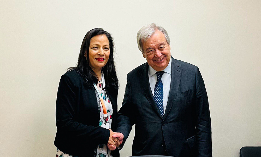 न्युयोर्क- परराष्ट्रसचिव सेवा लम्सालले संयुक्त राष्ट्रसंघका महासचिव एन्टोनियो गुटेरेससँग मंगलबार भेटघाट गरेकी छन् ।