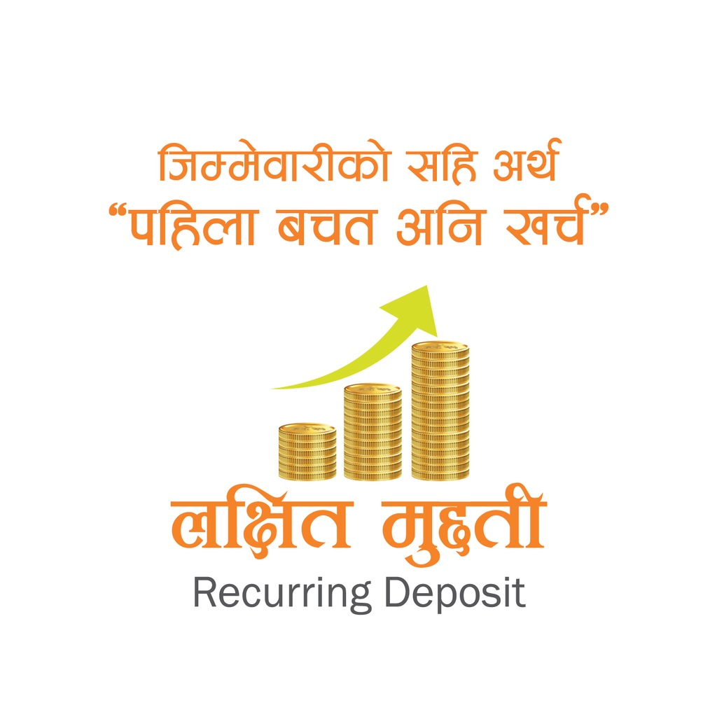 यो “लक्षित मुद्दती” रिकरिङ्ग डिपोजिटमा ग्राहकहरुले न्यूनतम रु. ५०० देखि जम्मा गर्न सकिनेछ । ग्राहकले जम्मा गर्ने रकम सुनिश्चित गरिसके पछि गरेको रकम हरेक महिना स्वतः लक्षित मुद्दती खातामा उक्त रकम जम्मा हुने गर्दछ । १ वर्षदेखि ५ वर्षसम्मको समयावधि निर्धारण गरी खाता खोल्न सकिन्छ ।