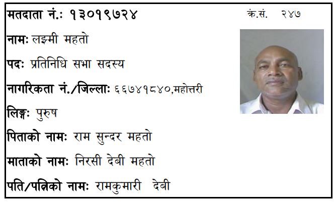 काठमाण्डु- कर्तव्य ज्यान मुद्दामा प्रहरीको फरार सूचीमा रहेका संसद लक्ष्मी महतोको नाम राष्ट्रपति निर्वाचनको मतदाता नामावलीमा समावेश गरिएको छ । कर्तव्य ज्यान मुद्दामा फरार रहेका कोइरी महोत्तरी क्षेत्र नम्बर १ बाट प्रतिनिधिसभामा निर्वाचित भएका थिए । तर, गृहमन्त्रालयसमेत विज्ञप्ति निकालेर उनलाई पक्राउ गर्न प्रहरीलाई निर्देशन दिएको थियो ।