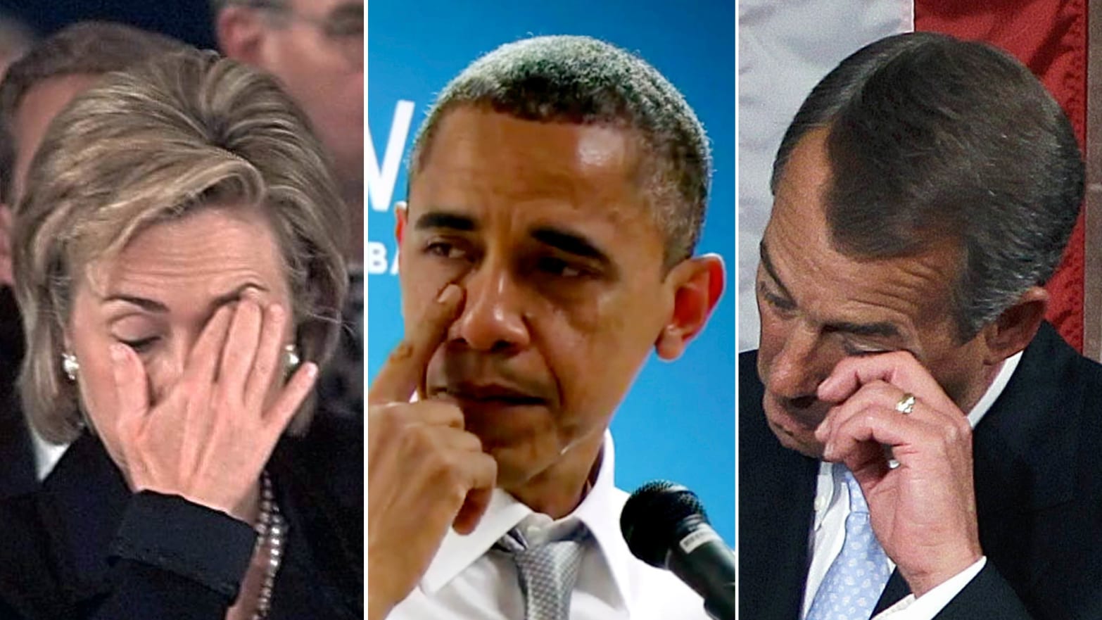 उनी सन् २०१२ मा स्यान्डी हुक नरसंहार र सन् २०१५ मा एरिथा फ्र्याङ्कलिनको प्रदर्शनमा रोइरहेको देखिएका थिए । बेलायती प्रधानमन्त्री टेरेसा मे सन् २०१९ मा प्रधानमन्त्री पदबाट राजीनामा दिने निर्णयको घोषणा गर्दा रोएकी थिइन् ।