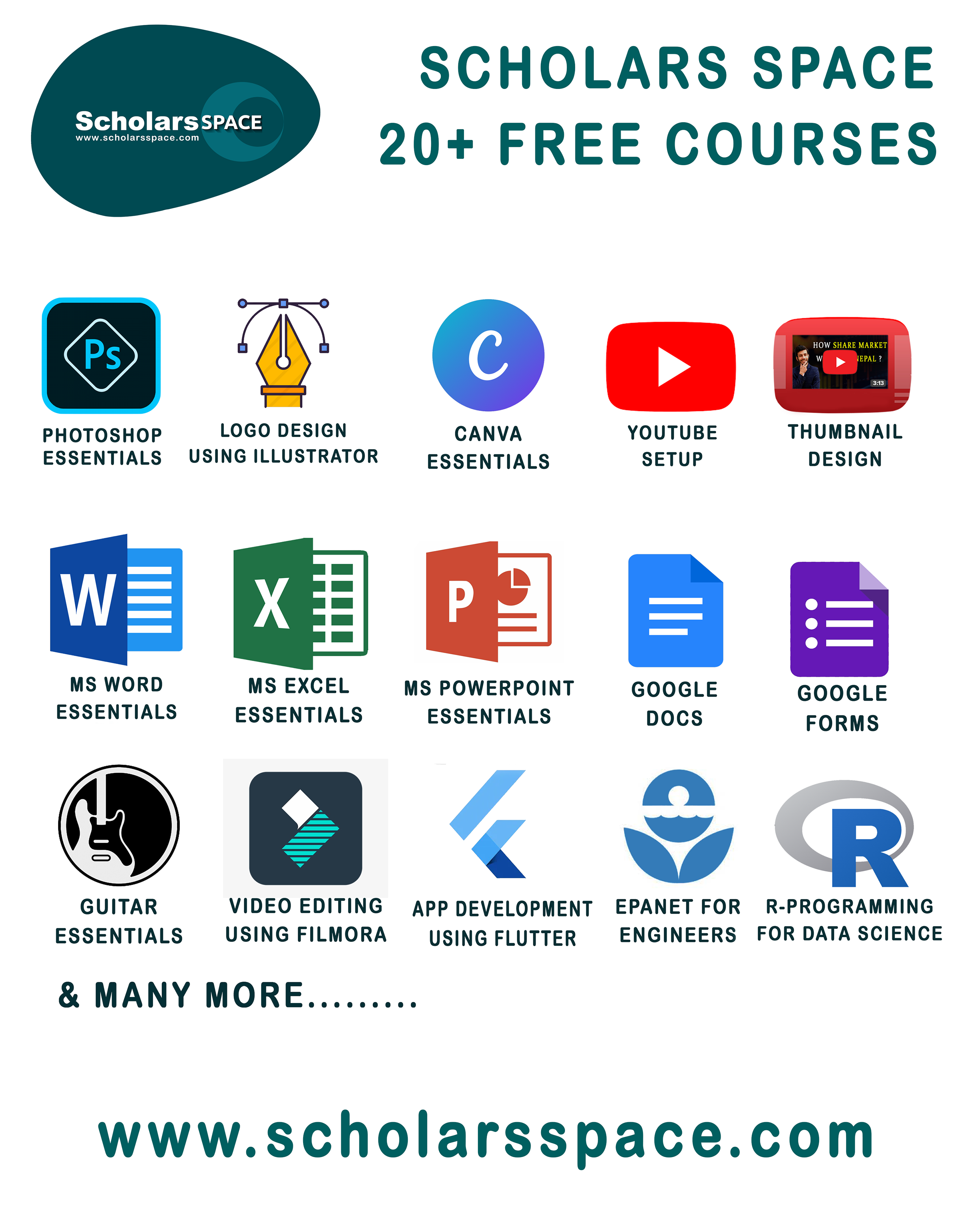 -तपाइले पनि लकडाउनको समयमा घरमै बसेर सिप सिक्ने अवसरको सदुपयोग गर्नुहोस् । (स्कलर्स स्पेसको वेबसाइटः www.scholarsspace.com, तथा तपाइले ९८४७३१९९४६, मा फोन या [email protected] मा इमेलमार्फत पनि थप जानकारी लिन सक्नुहुने छ ।