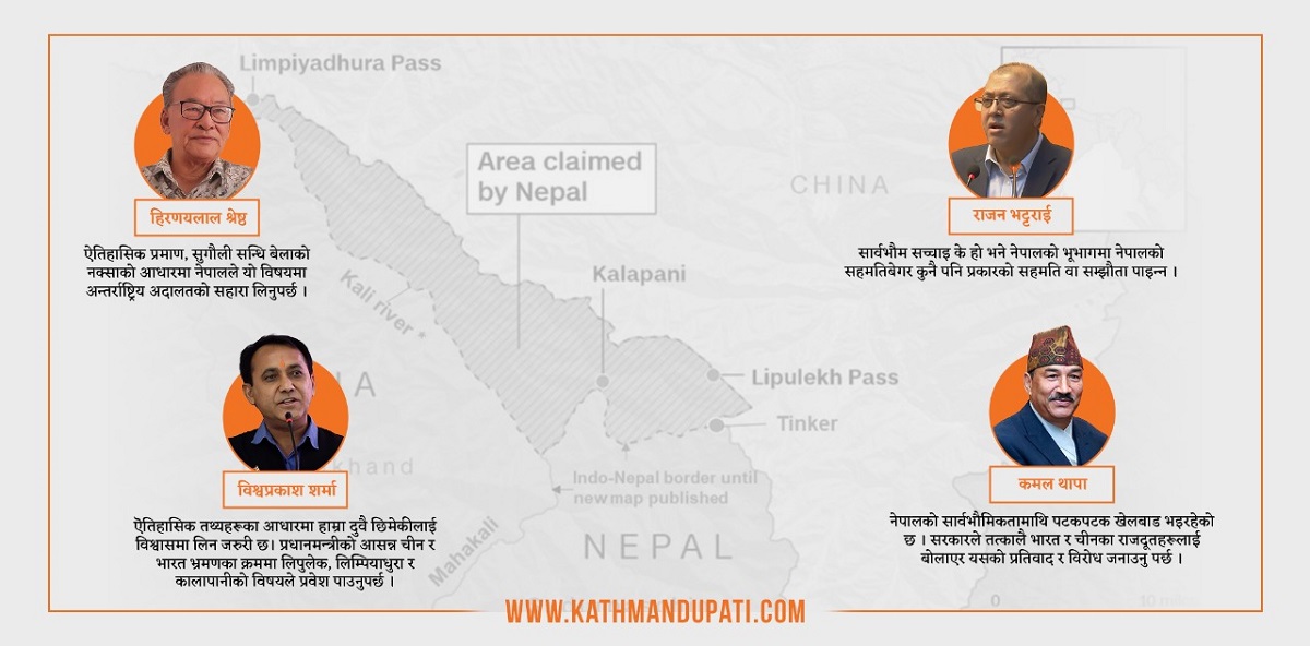 ‘पटकपटक यसरी नेपालको सार्वभौमिकतामाथि खेलबाड भइरहेको सन्दर्भमा यो विषयलाई अझ सशक्त ढंगबाट उठाउनु पर्छ । सरकारले भारत र चीनका राजदूतहरूलाई बोलाएर यसको प्रतिवाद गर्न र विरोध जनाउनु पर्छ’, थापाले भने ।