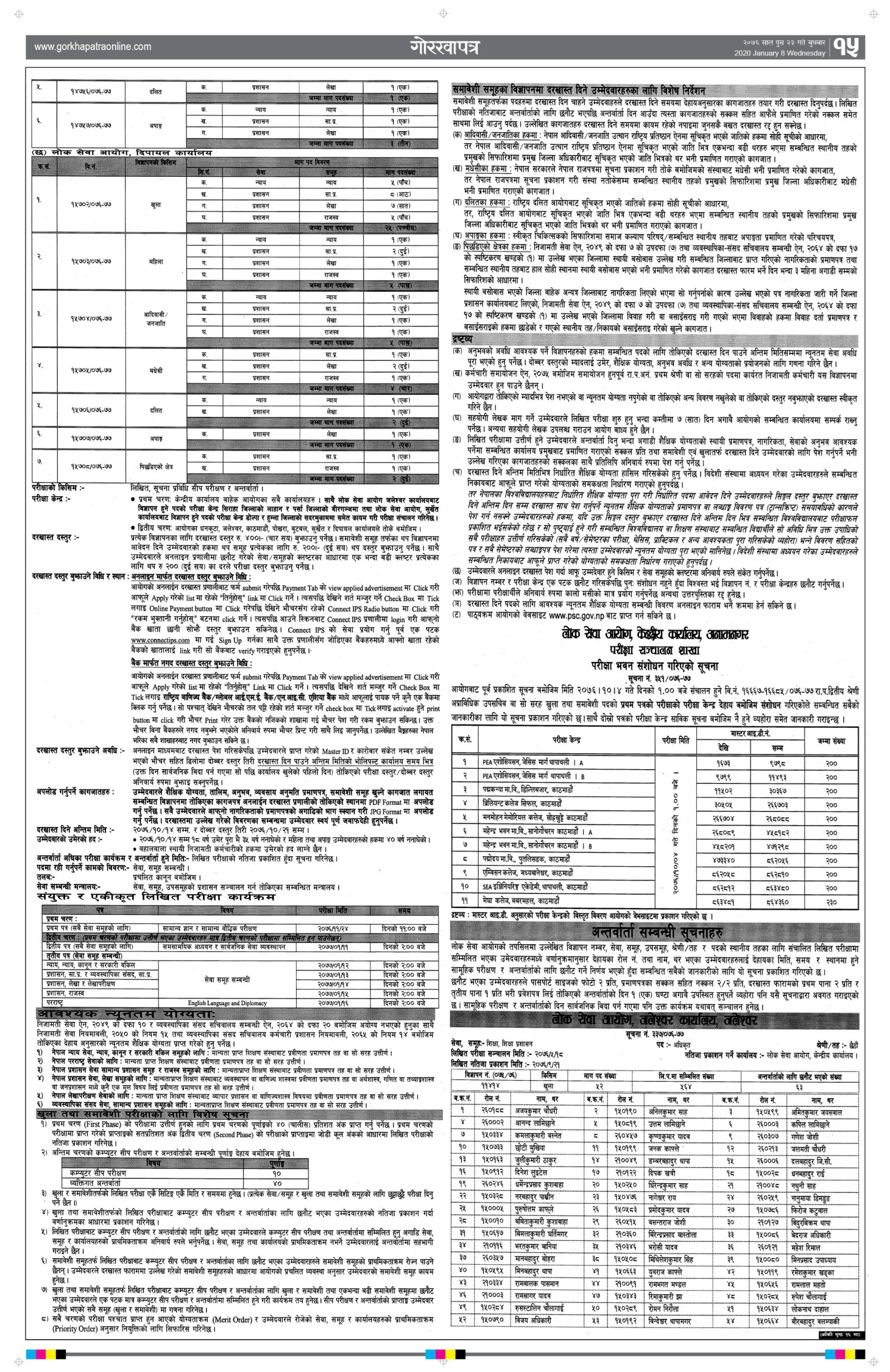 लोकसेवा आयोगको धनकुटा, जलेश्वर, काठमाडौं, पोखरा, बुटवल, सुर्खेत र दिपायल कार्यालयमा दरखास्त दिन सकिने जनाइएको छ ।
