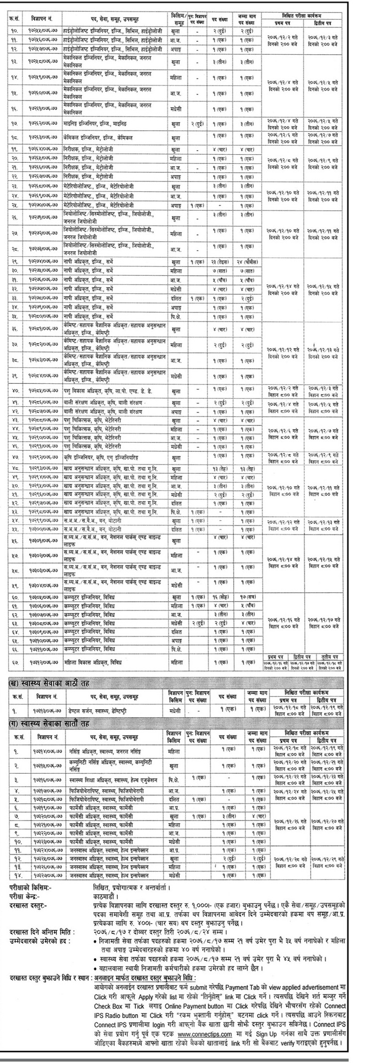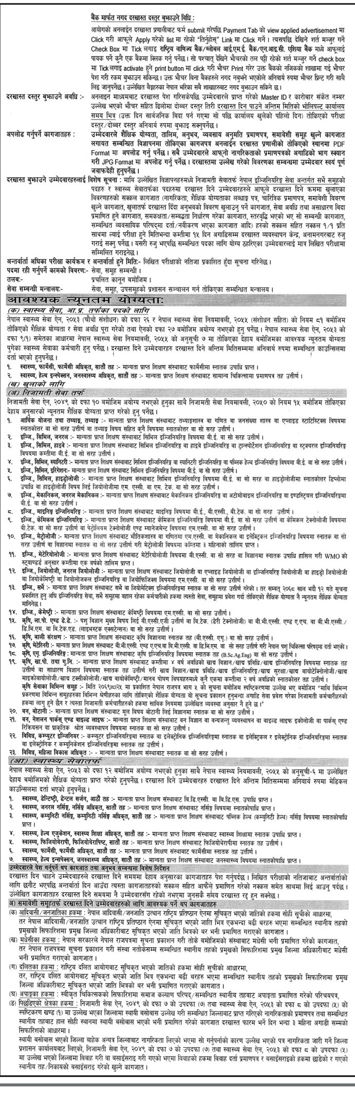 आयोगले प्राविधिकतर्फ इन्जिनियरिङदेखि सबै सेवा/समूहको परिमार्जित पाठ्यक्रमसहित विज्ञापन गरेको जनाएको छ । इच्छुक र योग्यता पुगेका उम्मेदवारले आगामी मंसिर १८ भित्र र दोब्दर दस्तुर तिरेर मंसिर २४ भित्र पनि आवेदन दिन सक्नेछन् ।