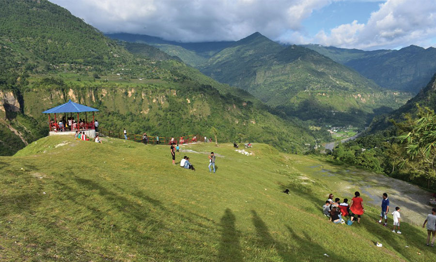 आज मौसम पनि खुलेको छ । लभ्लीहिलको उत्तरतर्फ चाँदी झैँ सेता हिमश्रृङ्खला मुसुक्क मुस्कुराइरहेजस्ता देखिएका छन् । बेनी बजारलाई फन्को मारेर कालीगण्डकी र म्याग्दी नदी नागबेली हुँदै बगेको दृश्यलाई नियाल्दै प्रणय शिखरको शिरमा ऐतिहासिक ज्यामरुककोटको खड्गभवानी र पुछारमा बेनी बजारको सुन्दरतालाई साक्षी राखेर सुन्दर जोडी माया साटासाट गरिरहेका छन् ।