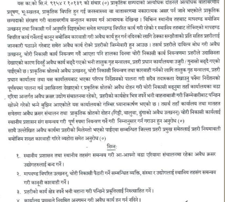 प्रदेश प्रहरी कार्यालयबाट पठाइएको पत्रमा अबैध क्रसर खुलाउने कार्यमा प्रहरीको संग्लग्नता देखिए जिल्ला प्रहरी प्रमुखलाई विभागीय कारबाहीको चेतावनीसमेत दिइएको छ । एसपी चन्द भने दाङबाट सरुवाको तयारीमा छन् ।