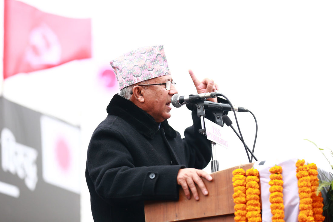 आइतबार तेह्रथुममा आयोजित विरोध सभालाई सम्बोधन गर्दै अध्यक्ष नेपालले प्रधानमन्त्री अोलीले आफू र पुष्पकमल दाहाल प्रचण्डलाई पक्राउ गर्ने तयारी गरेको बताए । उनले ज्ञानेन्द्र शाहको सातो लिएको भन्दै केपी ओलीबाट नडराउने बताउ ।