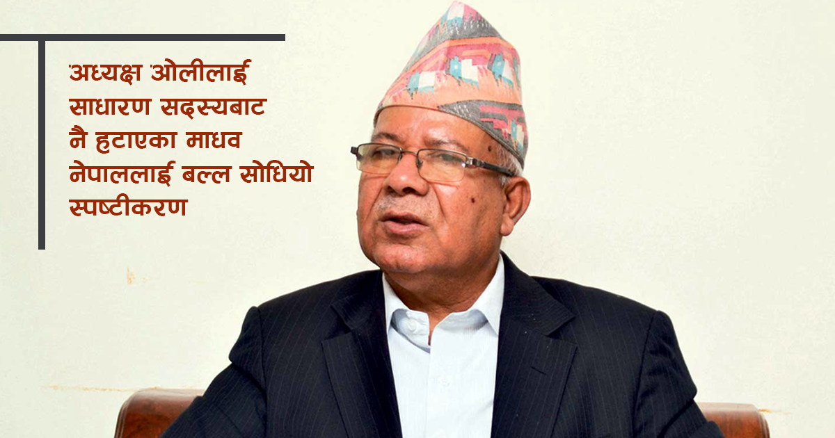‘माधव पक्षको बैठकमा मैले कि हामीले नयाँ संसदीय दलको नेता बनाउँदैछौं भनेर रोक्नुप¥यो, होइन भने लगातार ३ पटक बैठकमा नजाने आधार के हुन् भनेर प्रश्न गरें,’ उनले सम्झिए, ‘हामीले भनौं, केपी ओलीलाई संसदीय दलको नेताबाट फाल्न सक्छौं ? फाल्ने हाम्रो योजना छ ? छैन भने अरु ढंगबाट कोठे बैठक बस्न हुँदैन बनें ।’