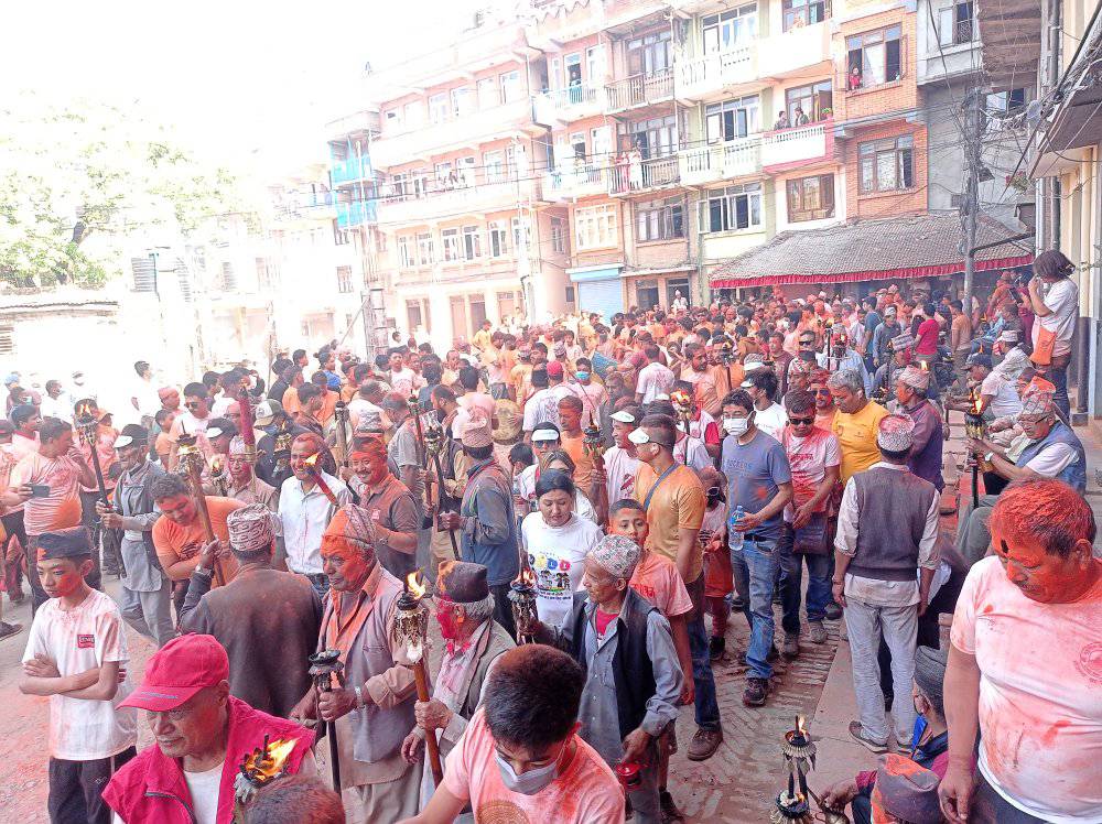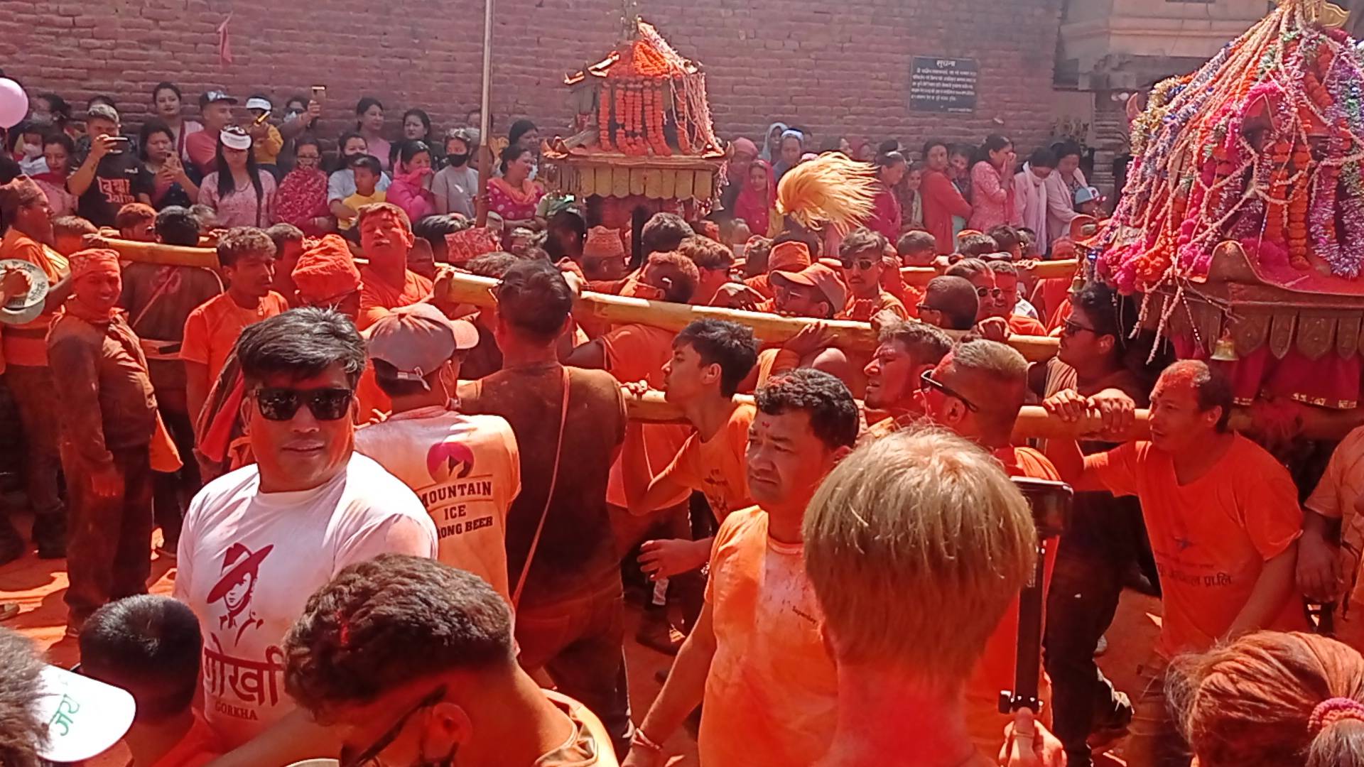 भक्तपुर – भक्तपुरको मध्यपुर थिमिको विस्का जात्राको छैटौं दिन शुक्रबार मध्यपुर थिमिमा सिन्दुर जात्रा मनाइएको छ । ३२ वटा खटसहितको सिन्दुर जात्रा मनाइने भएपनि केही वर्षयता खटको सङ्ख्यामा कमी हुँदै आएको जनाइएको छ ।