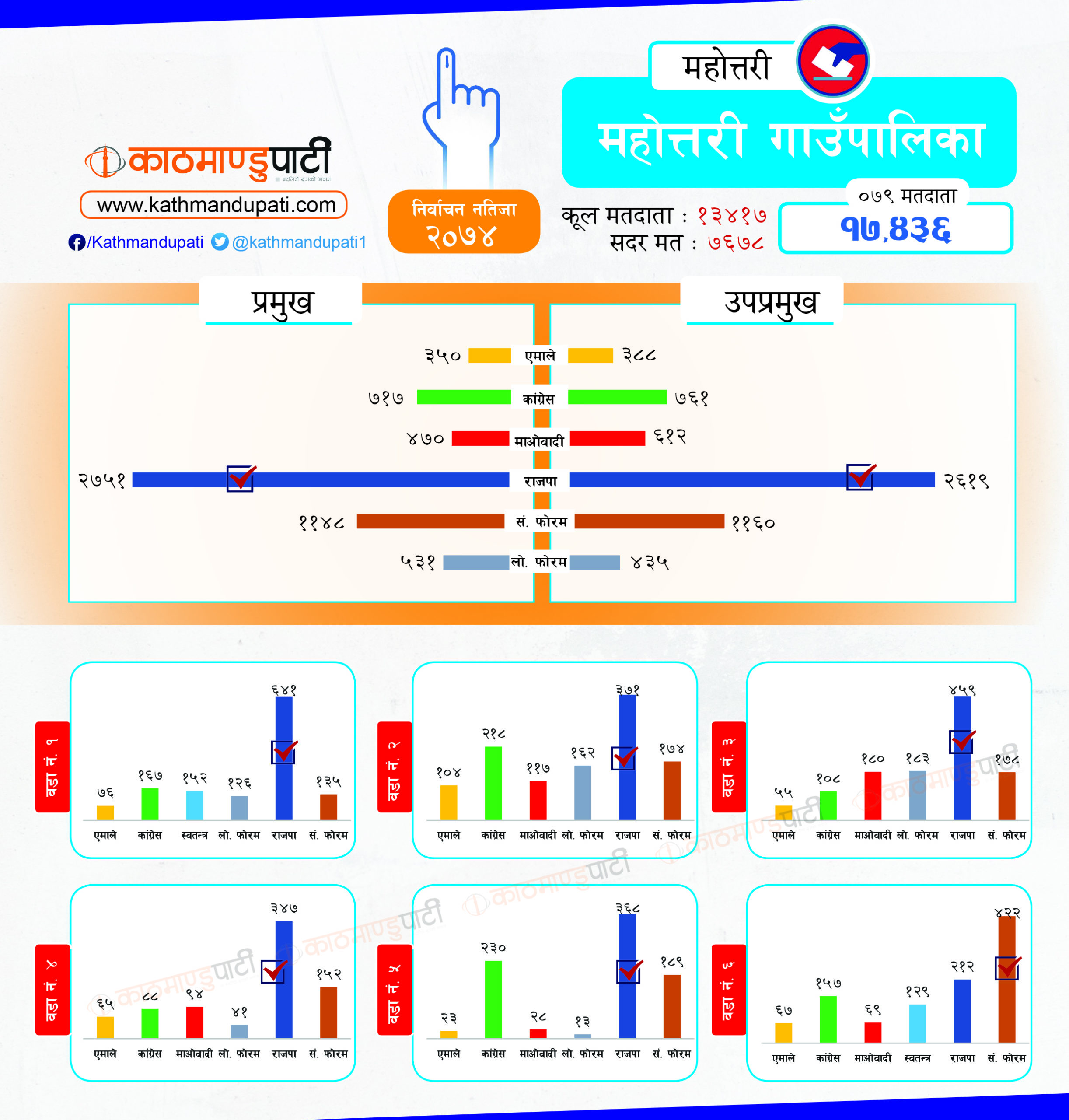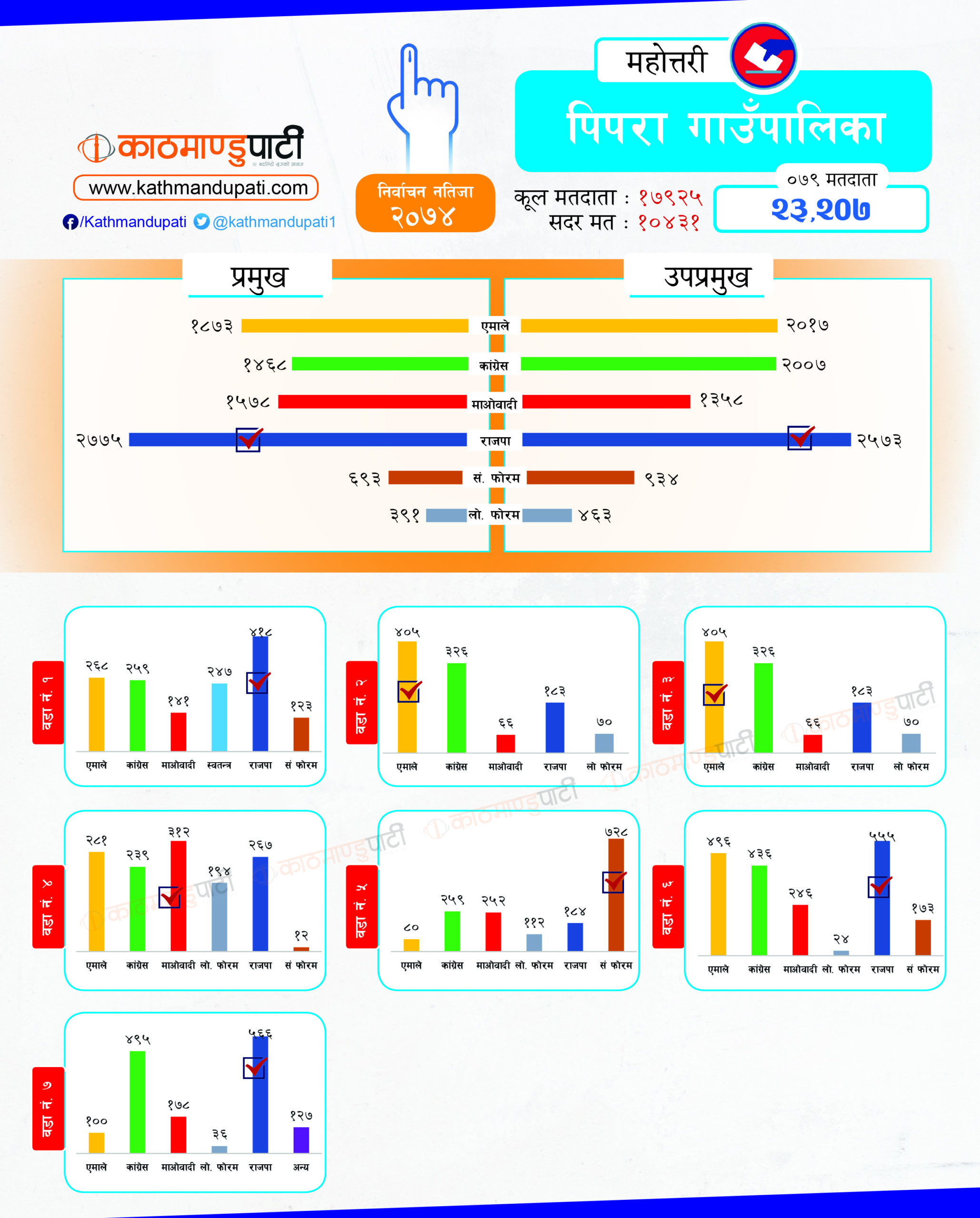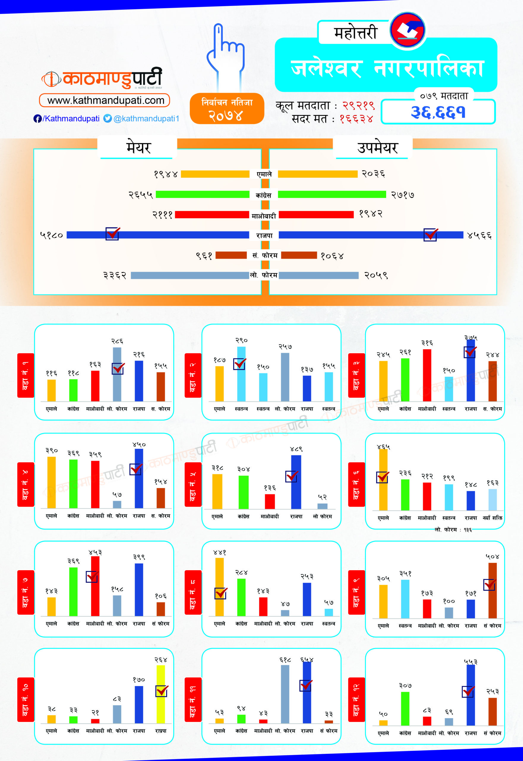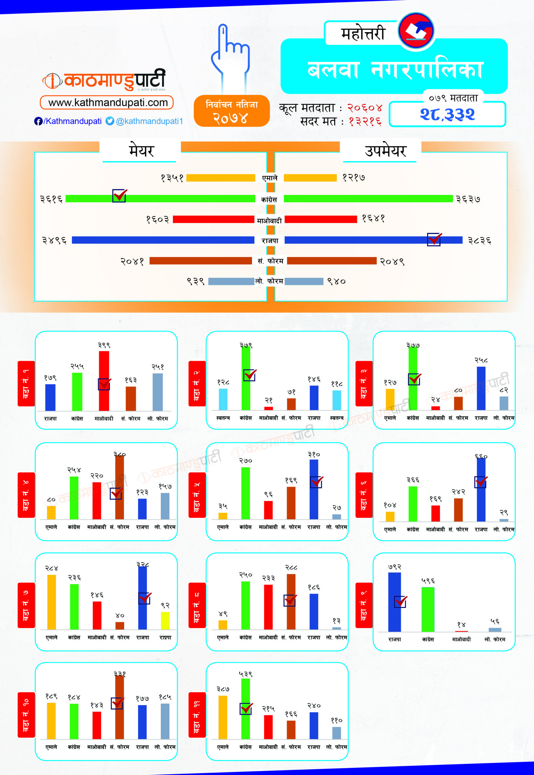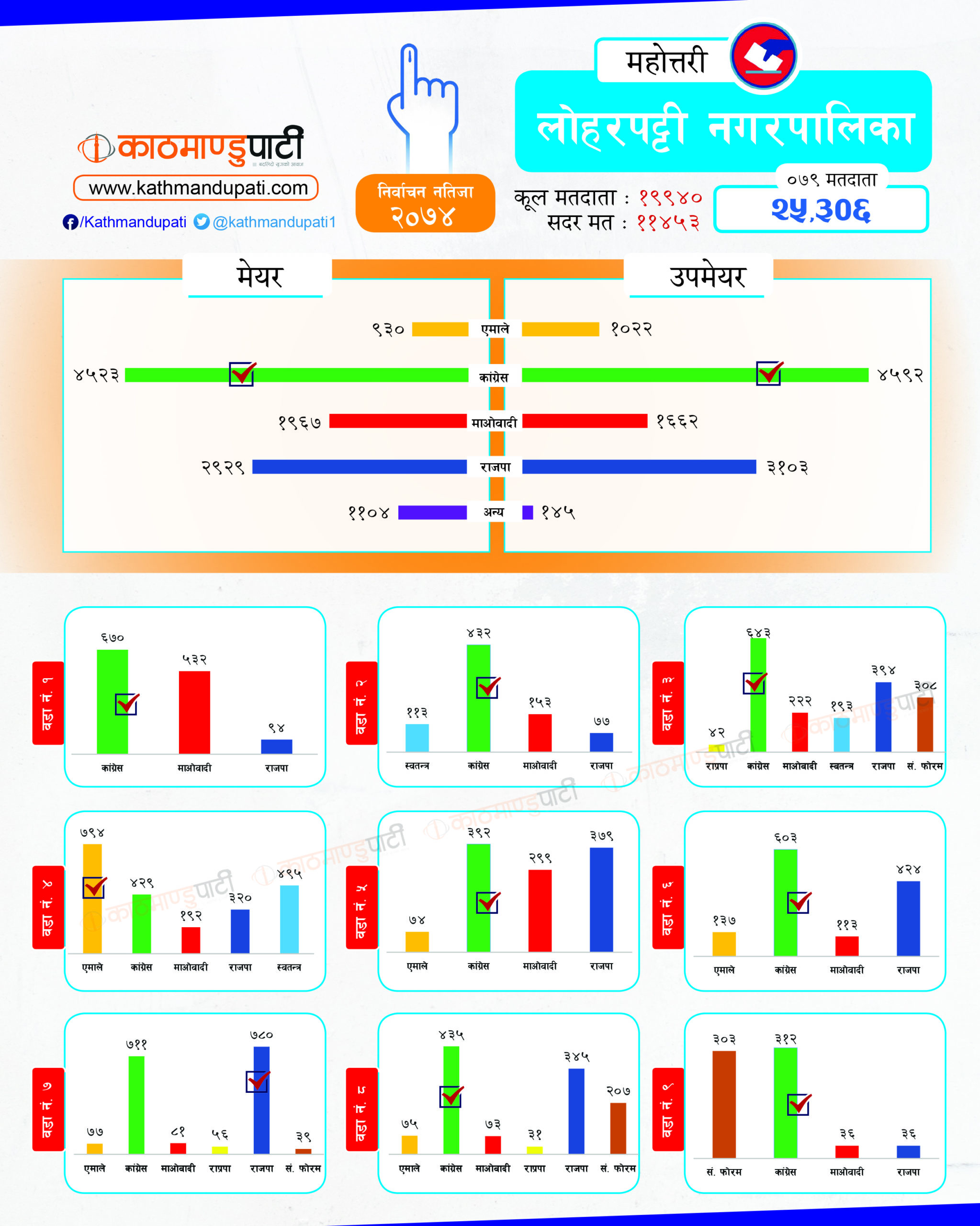 कांग्रेसले लोहरपट्टी नगरपालिकामा मेयर–उपमेयर तथा बलवा र औरही नगरपालिकामा मेयर तथा संघीय समाजवादी फोरमले सोनमा गाउँपालिकाको अध्यक्ष–उपाध्यक्ष जितेको थियो । पहिले धेरै पालिका जितेको राजपा अहिले लोसपा भएको छ । तर, उसको अवस्था अहिले पहिलेको जस्तो छैन ।