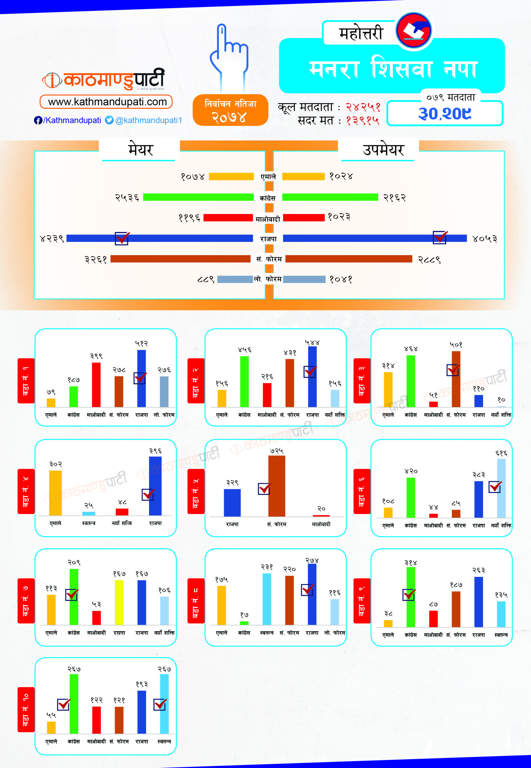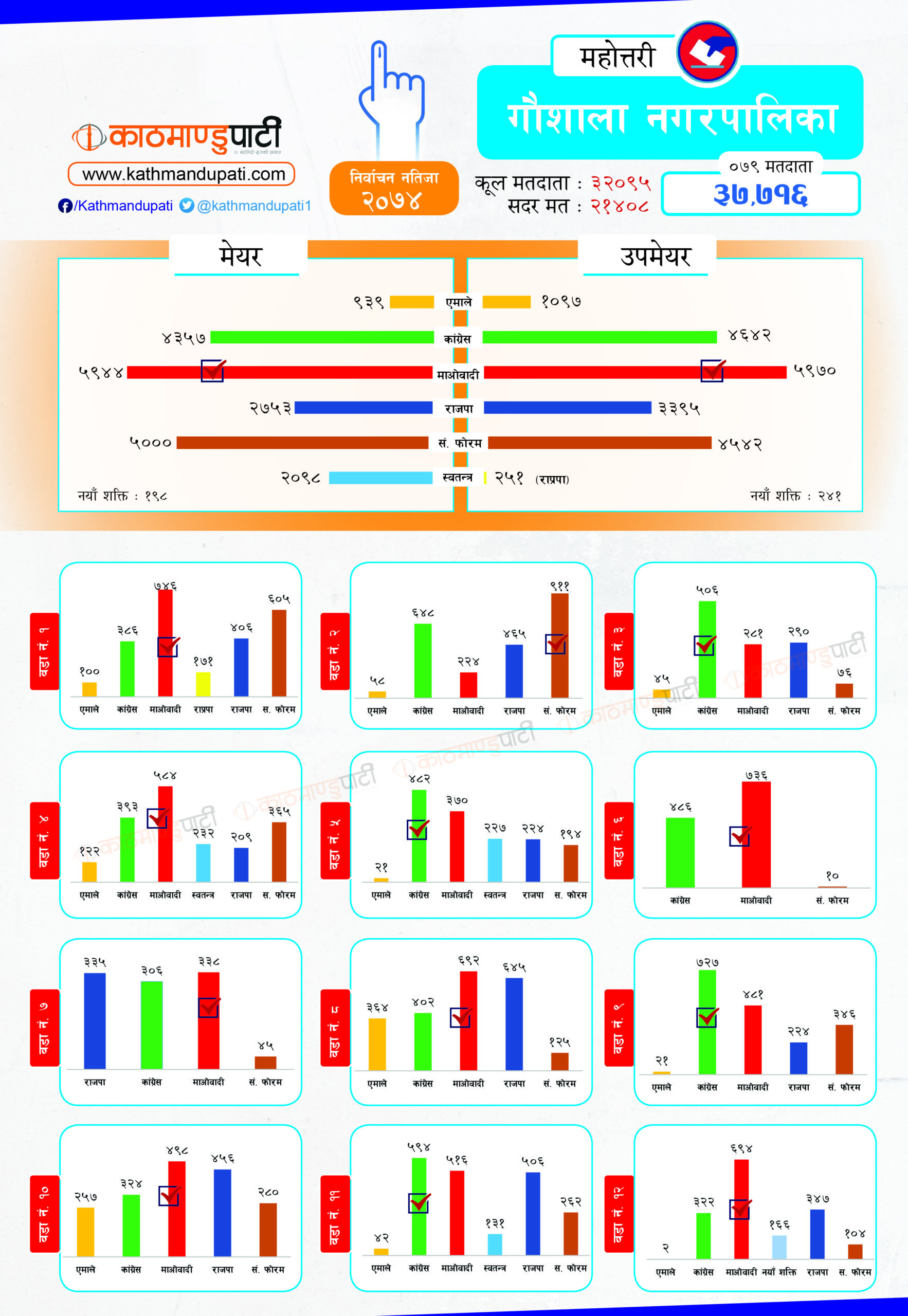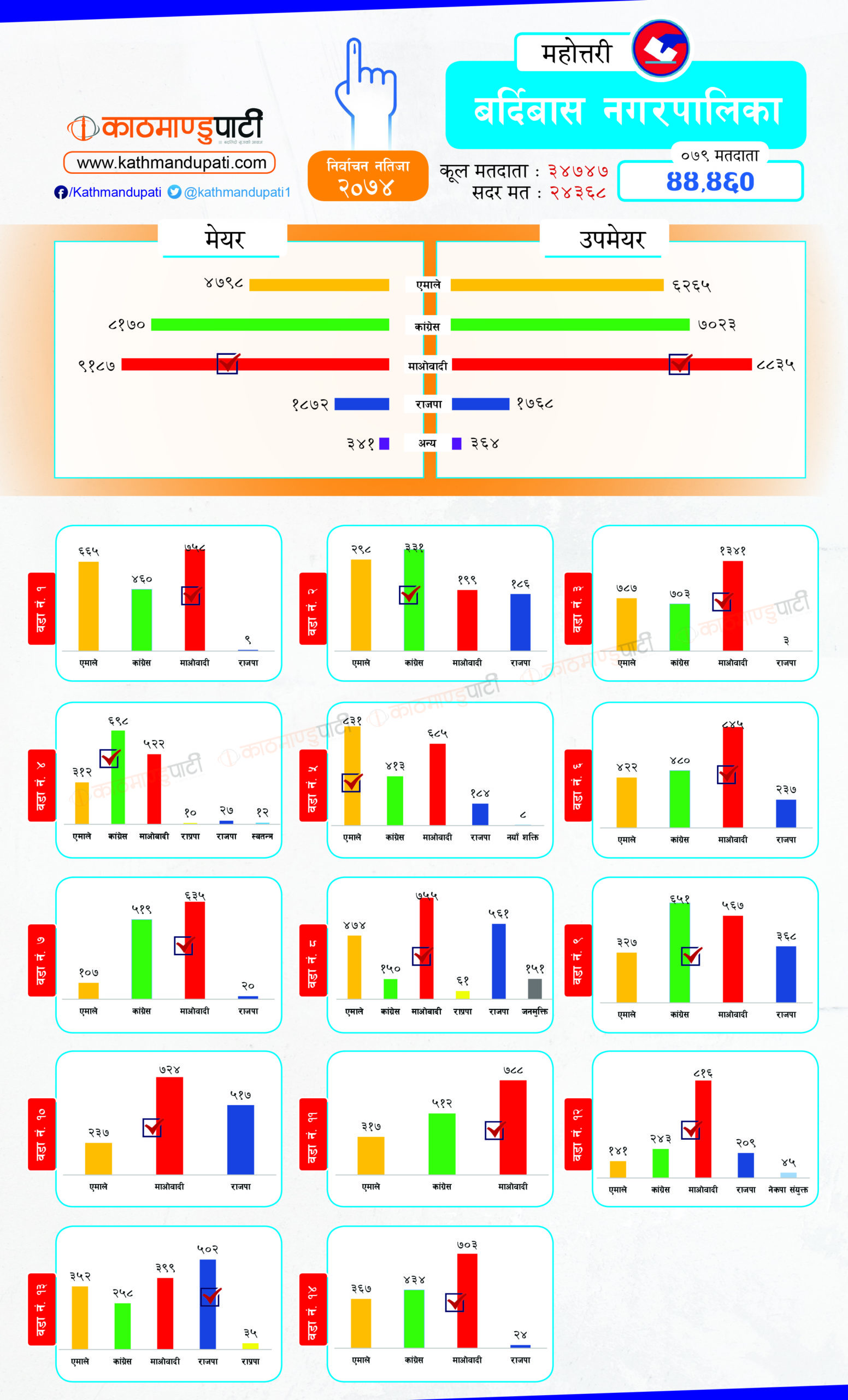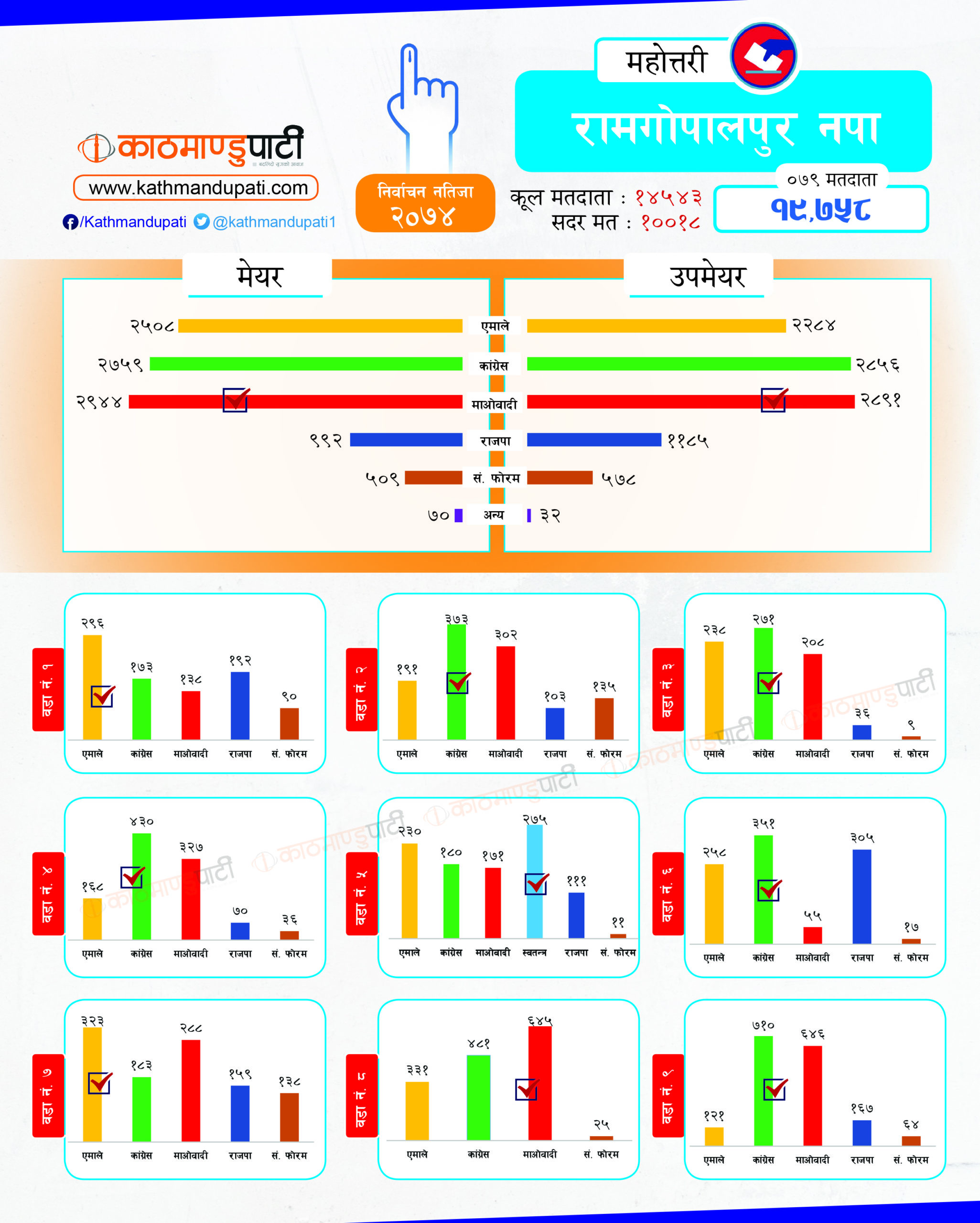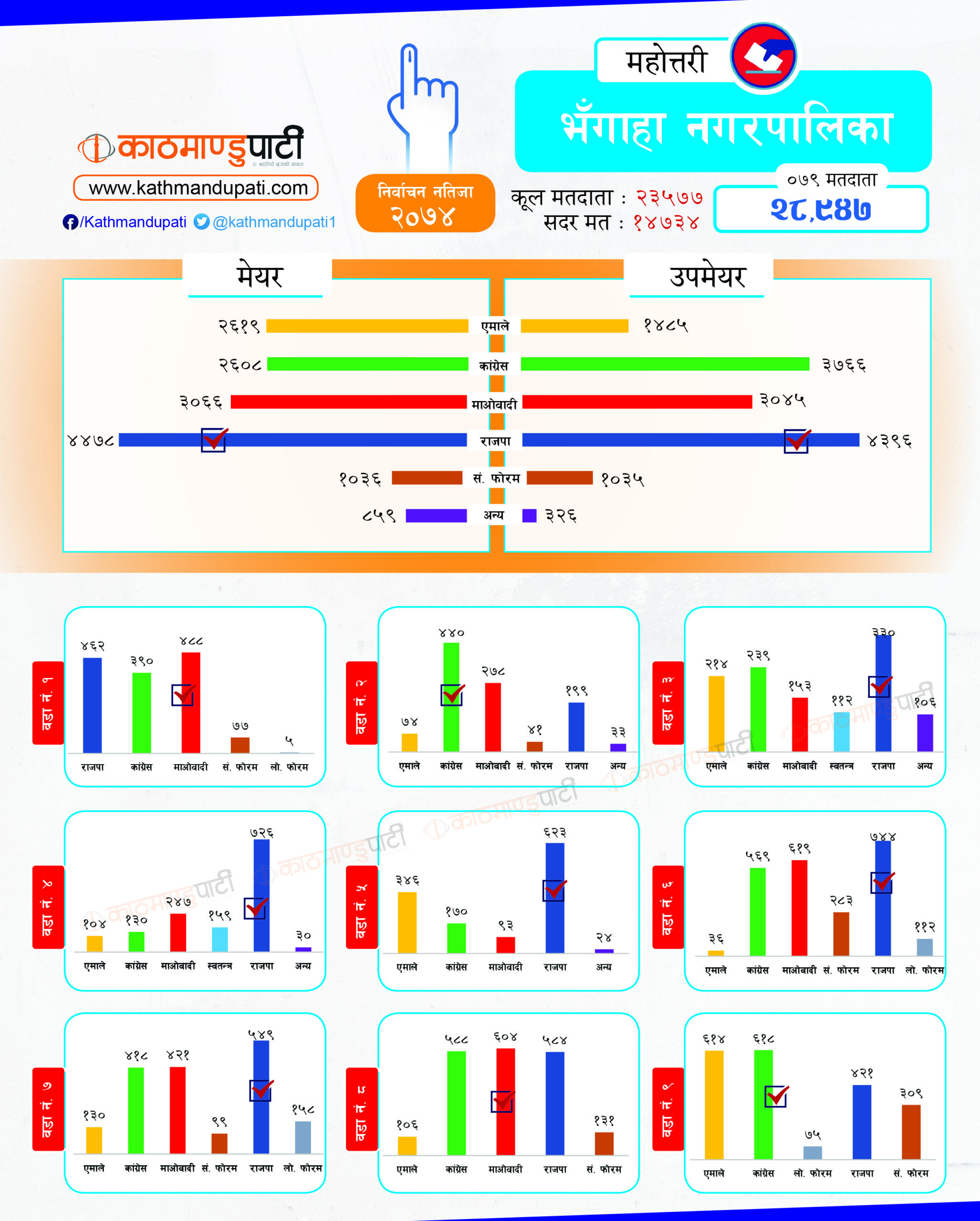 कांग्रेसले लोहरपट्टी नगरपालिकामा मेयर–उपमेयर तथा बलवा र औरही नगरपालिकामा मेयर तथा संघीय समाजवादी फोरमले सोनमा गाउँपालिकाको अध्यक्ष–उपाध्यक्ष जितेको थियो । पहिले धेरै पालिका जितेको राजपा अहिले लोसपा भएको छ । तर, उसको अवस्था अहिले पहिलेको जस्तो छैन ।