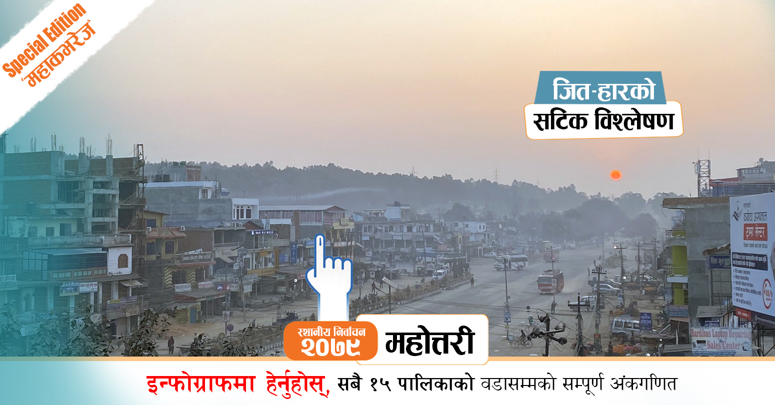 ०७४ सालको स्थानीय चुनावमा महोत्तरीमा तत्कालीन राष्ट्रिय जनता पार्टी (राजपा)ले सबैभन्दा धेरै पालिकामा जितेको थियो । उसले १५ मध्ये सात तह जित्यो भने दोस्रो माओवादीले चार पालिकामा सफलता पायो । यस्तै, कांग्रेसले तीन तथा संघीय समाजवादी फोरमले एक पालिका जिते । जिल्लामा एमालेले भने कुनै पनि पालिकामा जित निकाल्न सकेन ।