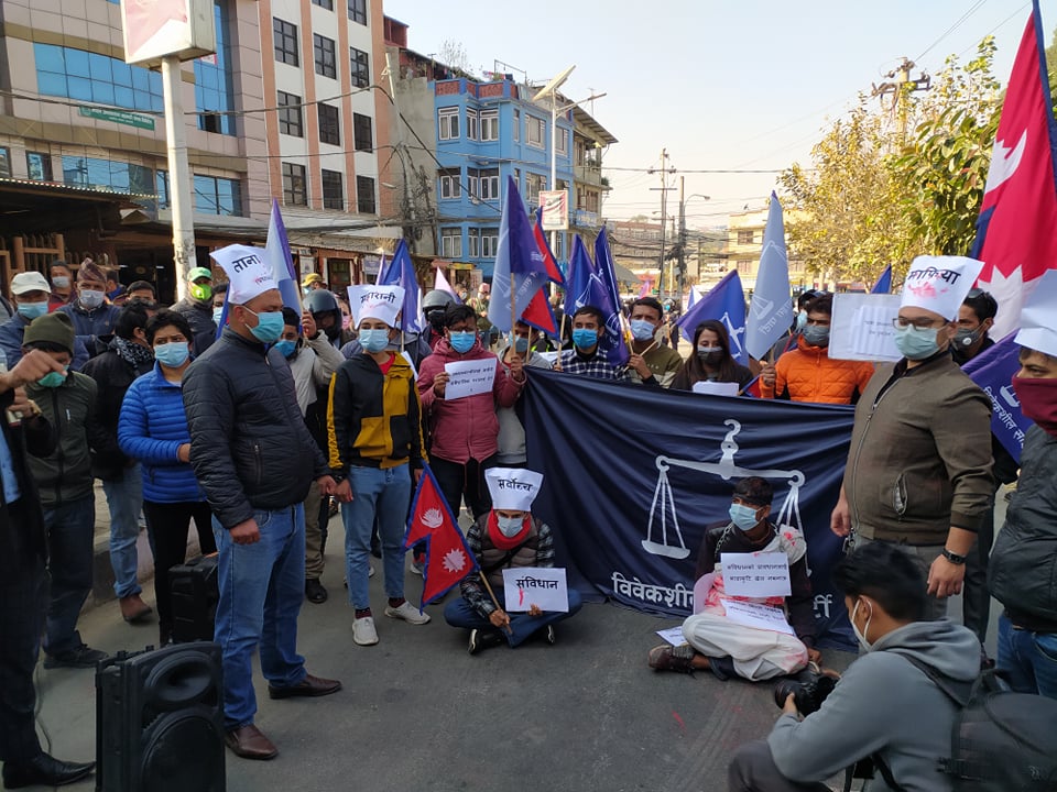 काठमाण्डु – प्रधानमन्त्री केपी शर्मा ओलीको कदमविरुद्ध बिबेकशिल साझा पार्टीले सोमबार पनि विरोध प्रदर्शन गरेको छ ।