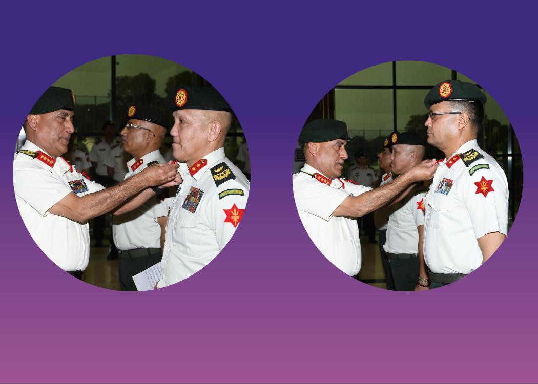 उपरथीमा बढुवा भएका थापा र पौडेललाई प्रधान सेनापतिद्वारा दर्ज्यानी चिन्ह प्रदान