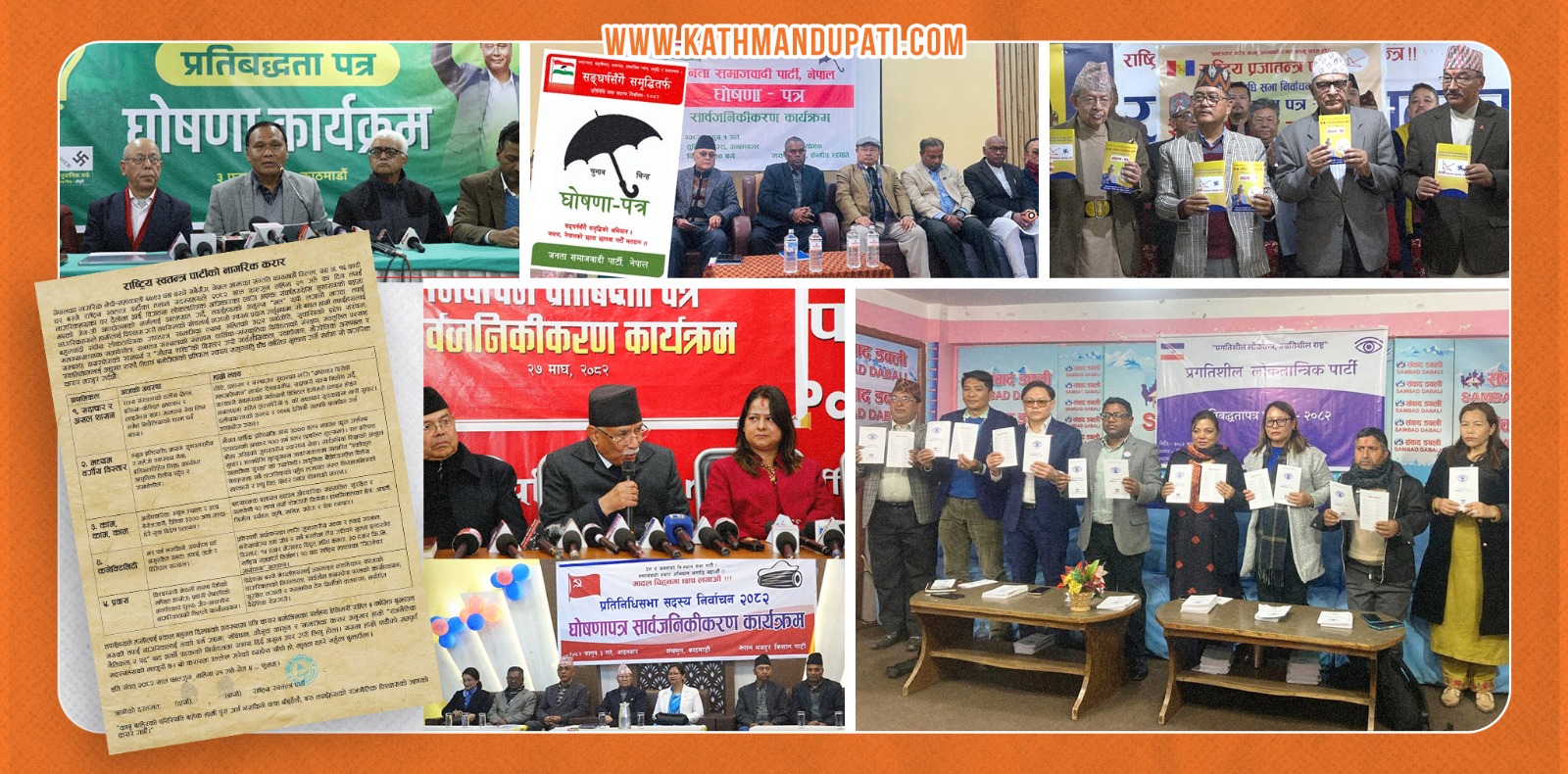 आइतबार राष्ट्रिय स्वतन्त्र पार्टी (रास्वपा), नेपाल मजदुर किसान पार्टी (नेमकिपा), उज्यालो नेपाल पार्टी र प्रगतिशील लोकतान्त्रिक पार्टीले आफ्नो चुनावी घोषणापत्र सार्वजनिक गरेका छन् ।