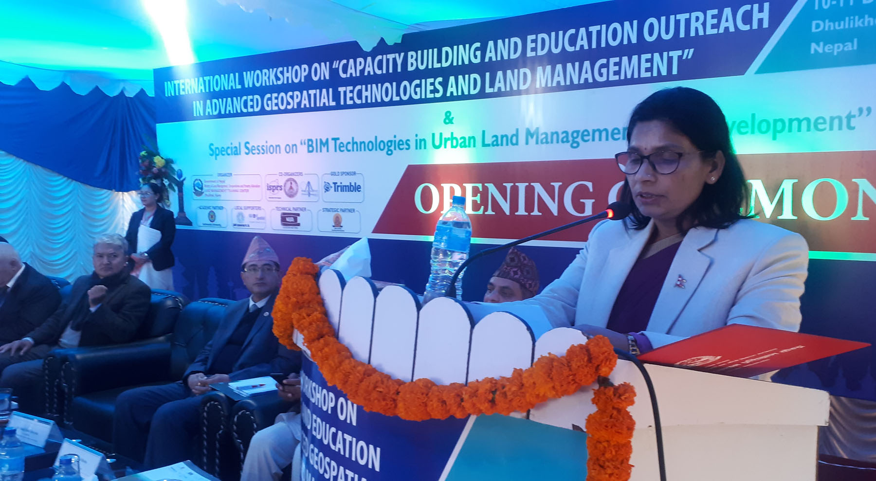 भूमि व्यवस्थापन तालीम केन्द्र धुलिखेलद्वारा आयोजित ‘भूमि व्यवस्थापनमा क्षमता अभिवृद्धि एवं शैक्षिक अनुसन्धान तथा विस्तार’ विषयक दुईदिने अन्तरराष्ट्रिय कार्यशाला गोष्ठीको आज उद्घाटन गर्दै उनले अव्यवस्थित बसोवासको दिगो व्यवस्थापन गर्ने अभियानमा मन्त्रालय लागिपरेको बताइन् ।