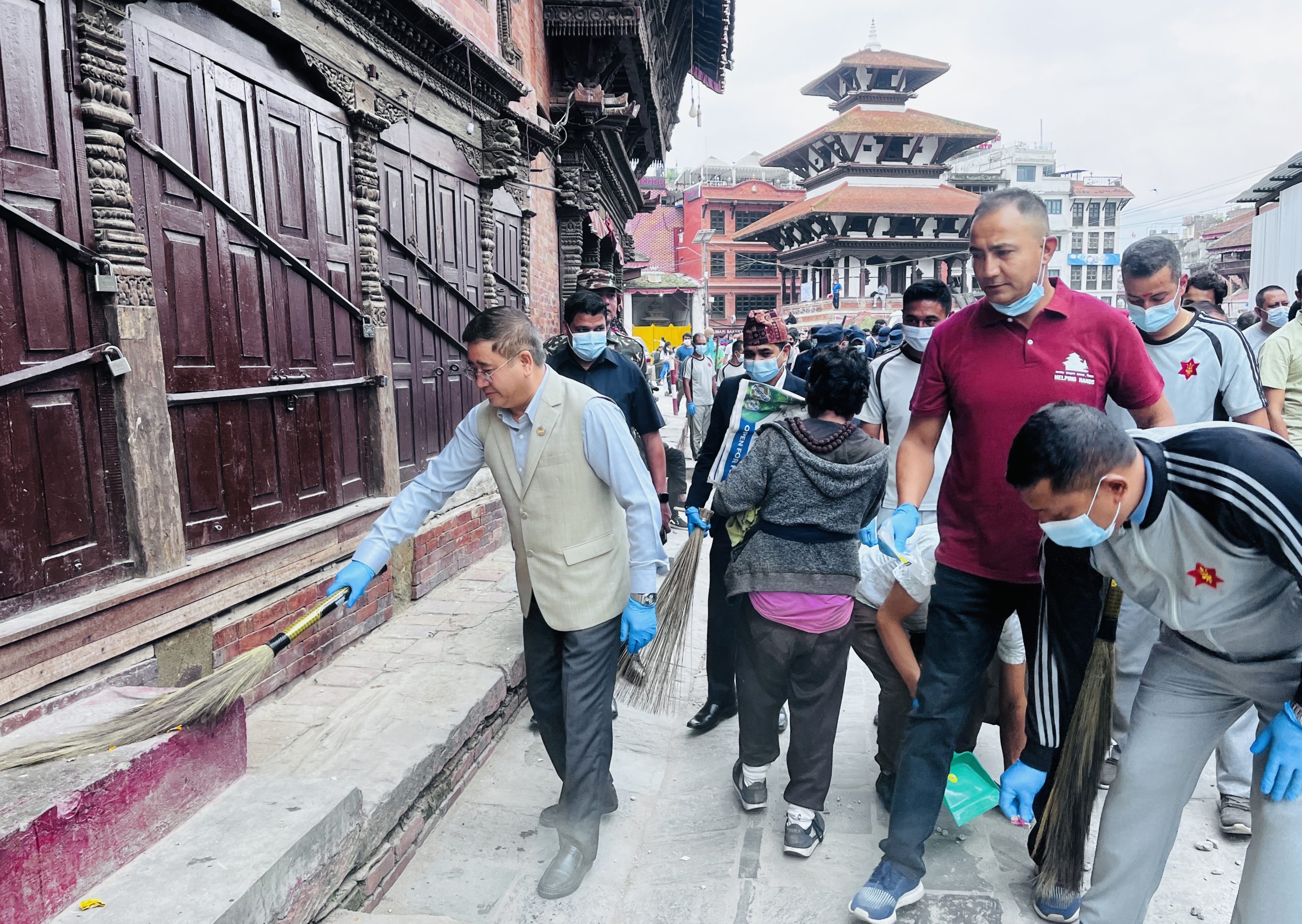 काठमाण्डु – संस्कृति, पर्यटन तथा नागरिक उड्डयनमन्त्री जीवनराम श्रेष्ठले काठमाण्डुकाे हनुमानढोका दरबार स्क्वायर क्षेत्रबाट पर्यटकीय स्थलमा विशेष सरसफाई अभियानको सुरुवात गरेका छन् ।