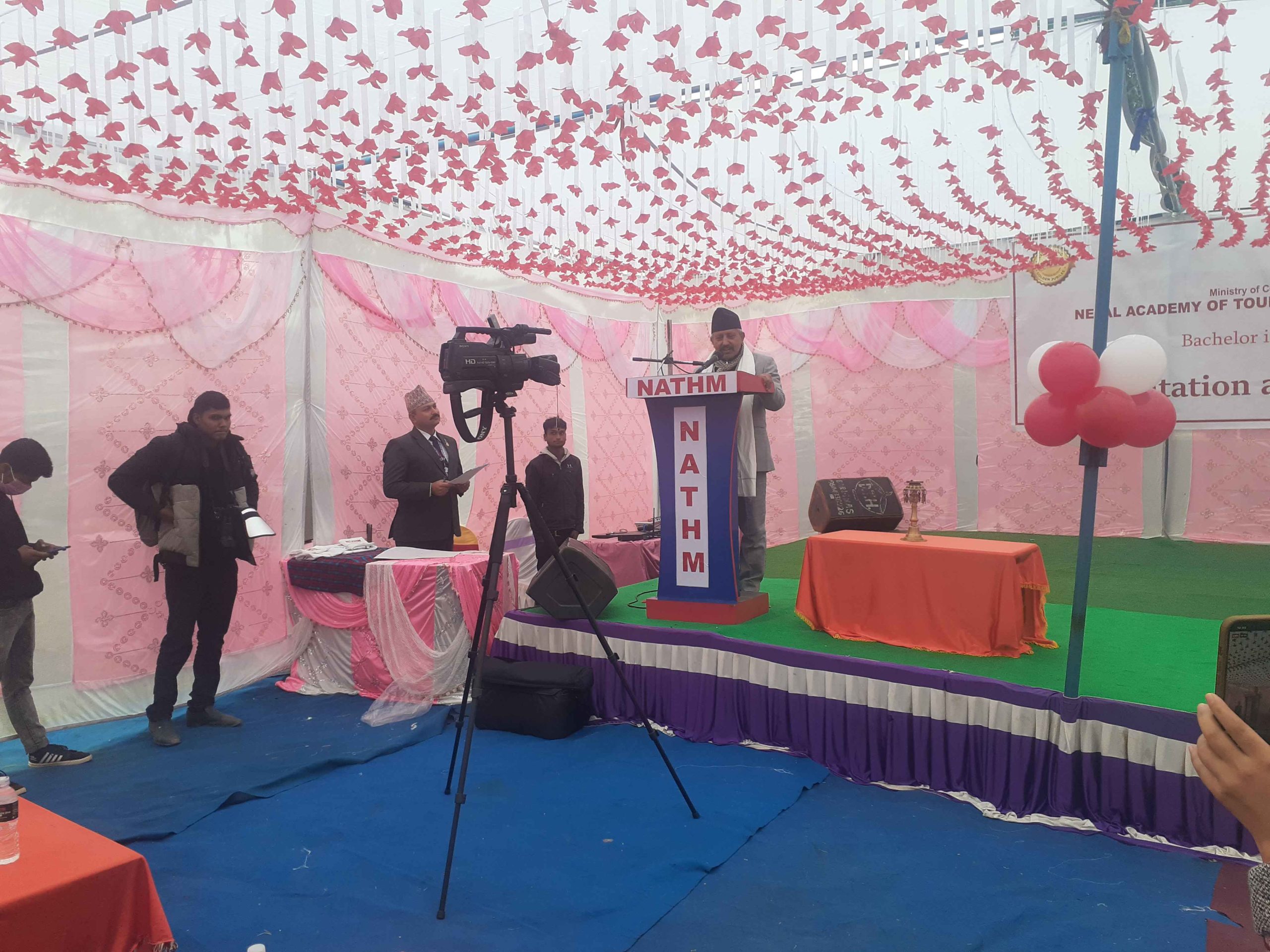 ‘वहाँले पर्यटन मन्त्रालयको नेतृत्व गर्दा यो सम्भव भएको हो वहाँ नभएको भए मैले मात्र देश कै प्रतिष्ठित कलेज ल्याउन सम्भव हुदैन्थ्यो,’ उनले भने । ब्याचलर इन हस्पिटालिटी म्यानेजमेन्ट पहिलो ब्याचका विद्यार्थीको स्वागत र अभिमुखिकरण कार्यक्रममा सहभागी हुन पुगेका पोखरेलले नेपाल एकेडेमी अफ टुरिस्म एण्ड होटल म्यानेजमेन्टको स्थपानाले मधेशमा शैक्षिक विकासको अर्को इट्टा थपेको बताए ।