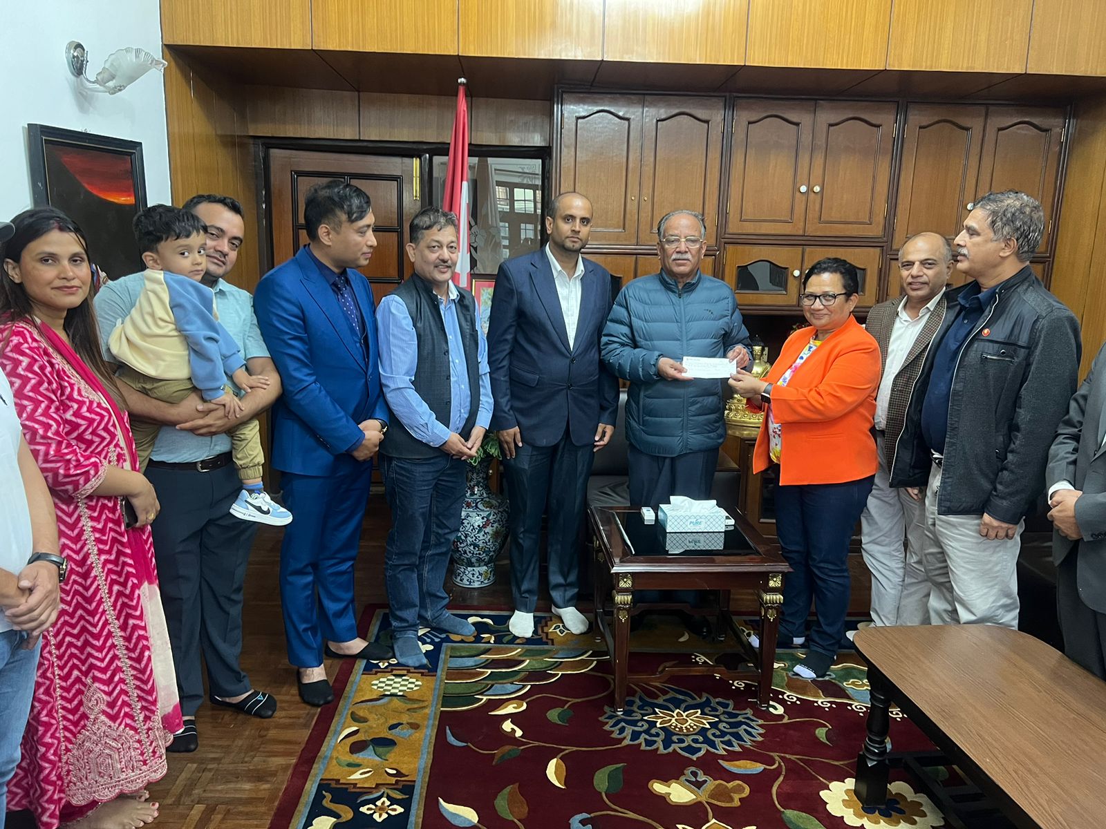 समितिले मंगलबार पार्टी अध्यक्ष पुष्पकमल दाहाल ‘प्रचण्ड’लाई रकमको चेक हस्तान्तरण गरेको हो ।