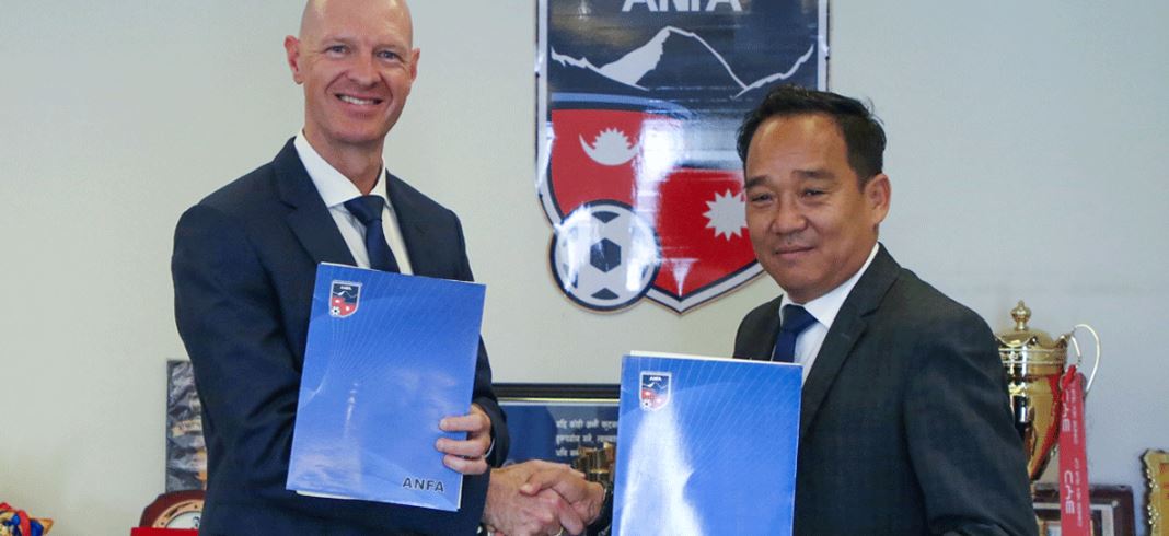 एन्फाका महासचिव किरण राईले मुख्य प्रशिक्षक म्याटलाई स्वागत गरेका छन् ।