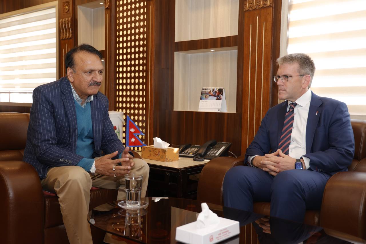काठमाण्डु – अर्थमन्त्री डा. प्रकाशशरण महतसँग नेपालका लागि अमेरिकी राजदूत डिन आर थम्पसन्ले शिष्टाचार भेट गरेका छन्।