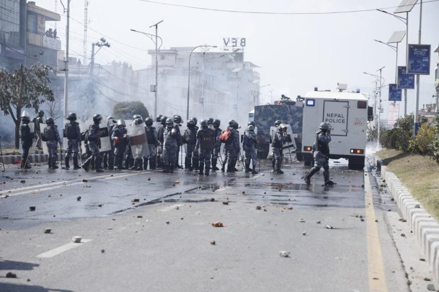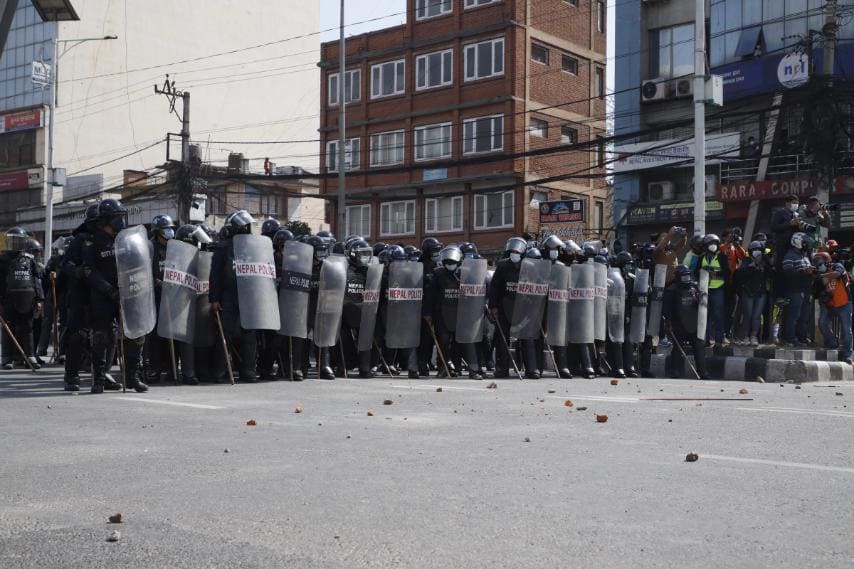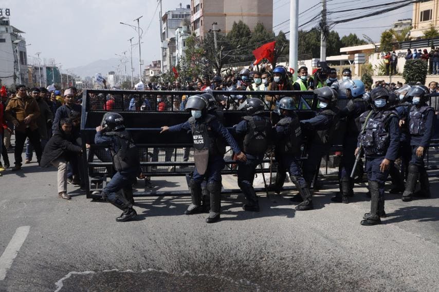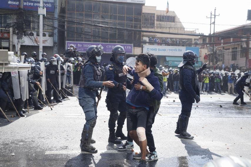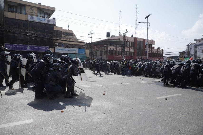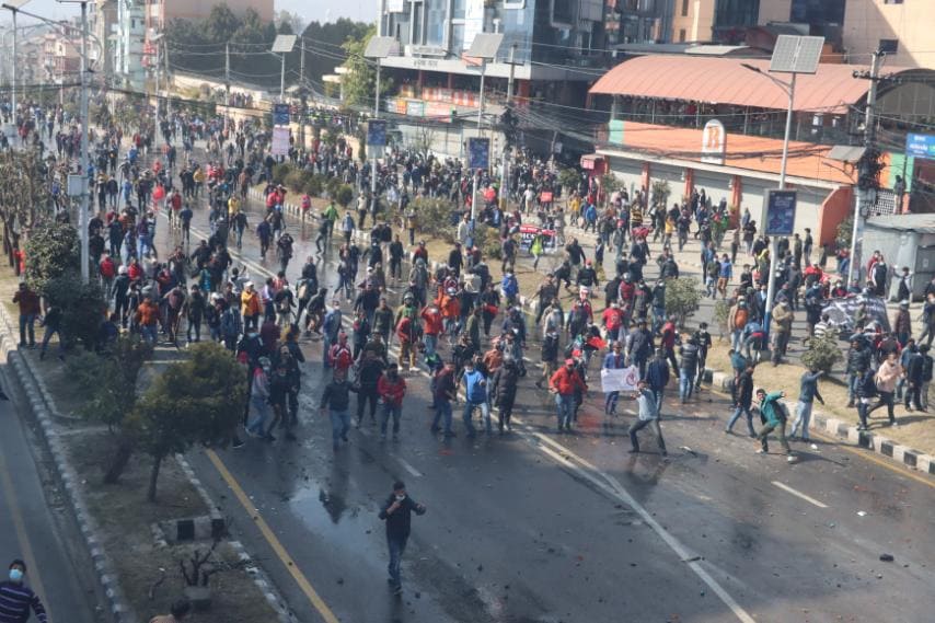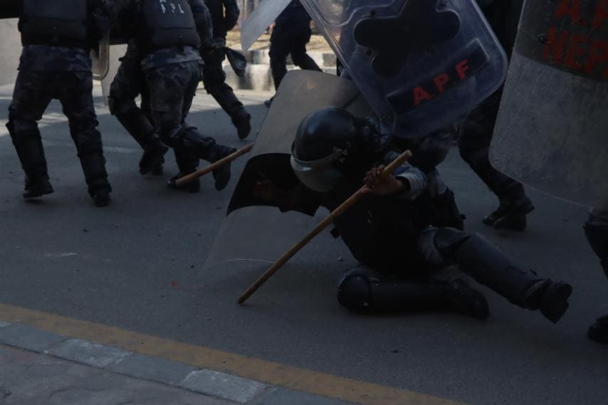 सोही क्रममा प्रहरी र प्रदर्शनकारीबीच झडप भएको छ । झडपमा प्रहरी र केही प्रदर्शनकारी सामान्य घाइते भएका छन् । प्रदर्शनकारीहरू निषेधित क्षेत्रमा प्रवेश गर्न खोजेपछि प्रहरीले पानीको फोहोर प्रयोग गरेको छ ।