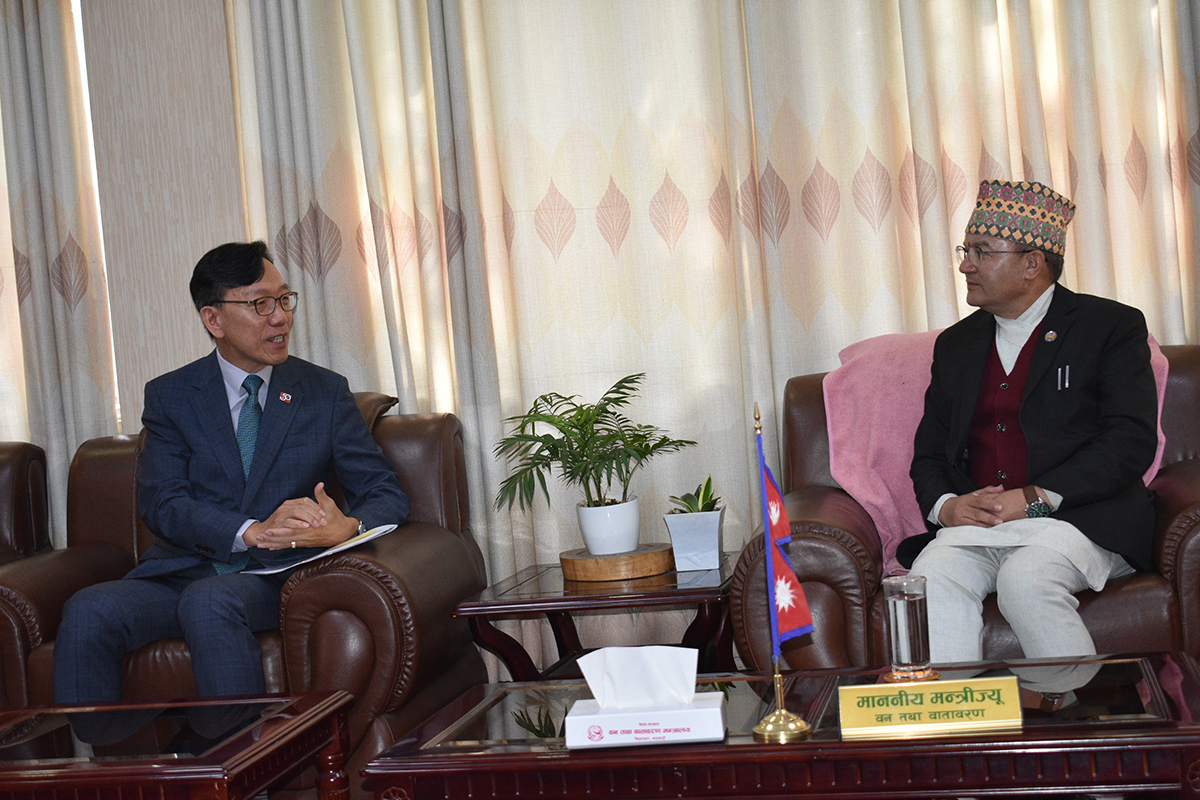 काठमाण्डु – वन तथा वातावरण मन्त्री ऐनबहादुर शाही ठकुरीसँग नेपालका लागि दक्षिण कोरियाका राजदूत पार्क तेयोङले शिष्टाचार भेटवार्ता गरेका छन् ।
