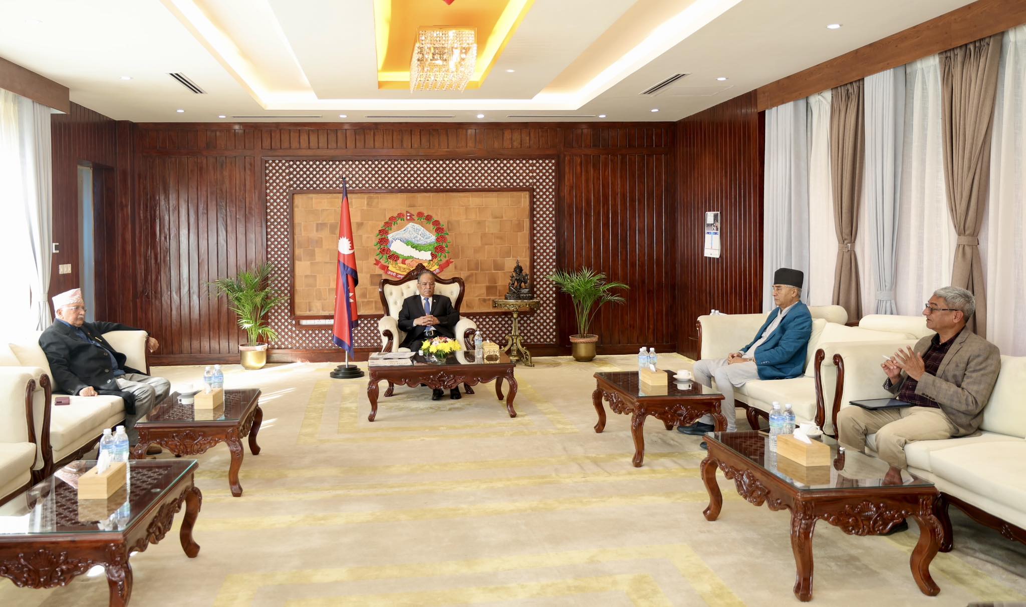 काठमाण्डु- प्रधानमन्त्रीको सरकारी निवास बालुवाटारमा प्रमुख तीन दलका शीर्ष नेताहरुबीच भेटवार्ता भएको छ ।