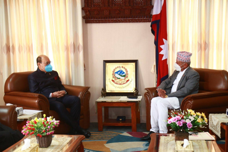 काठमाण्डु – भारतीय विदेश सचिव हर्षवर्द्धन श्रृंगला र परराष्ट्रमन्त्री प्रदीप ज्ञवालीबीच भेटवार्ता भएको छ । परराष्ट्र मन्त्रालय सिंहदरवारमा भएको भेटवार्तामा द्विपक्षीय हित र चासोका विषयमा छलफल भएको परराष्ट्र स्रोतले बतायो ।
