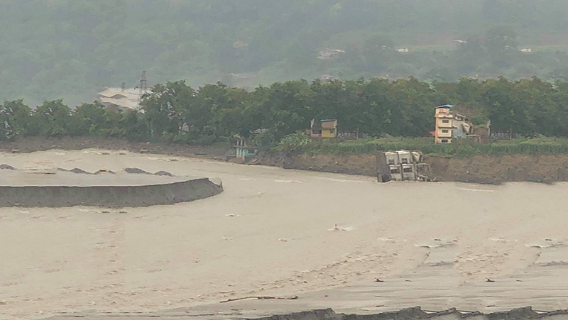 काठमाण्डु — सिन्धुपाल्चोकको मेलम्ची बजारमा इन्द्रावती नदीको बाढीले एउटा तीन तले घर बगाएको छ ।