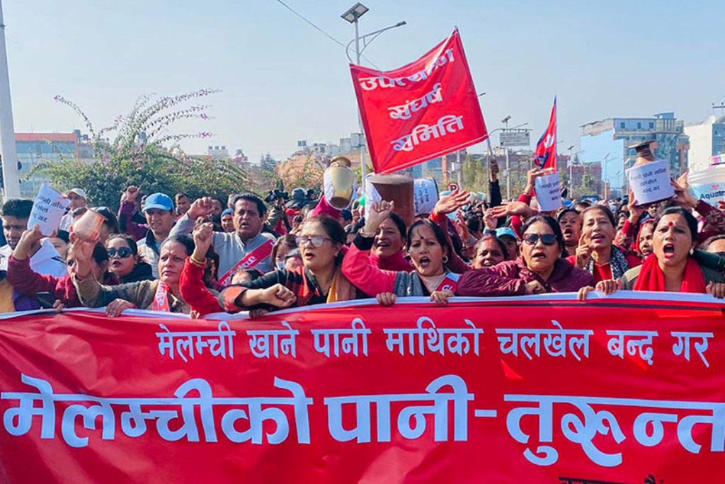 उनीहरूले ‘मेलम्ची पानीमाथिको चलखेल बन्द गर, मेलम्चीको पानी तुरुन्त खोल्’ लगायत नारा लगाएका थिए। उनीहरूले रित्ता गाग्री,लोटा,बाल्टिन बोकेर प्रदर्शन गर्दै विरोध र्याली निकालेको थिए।