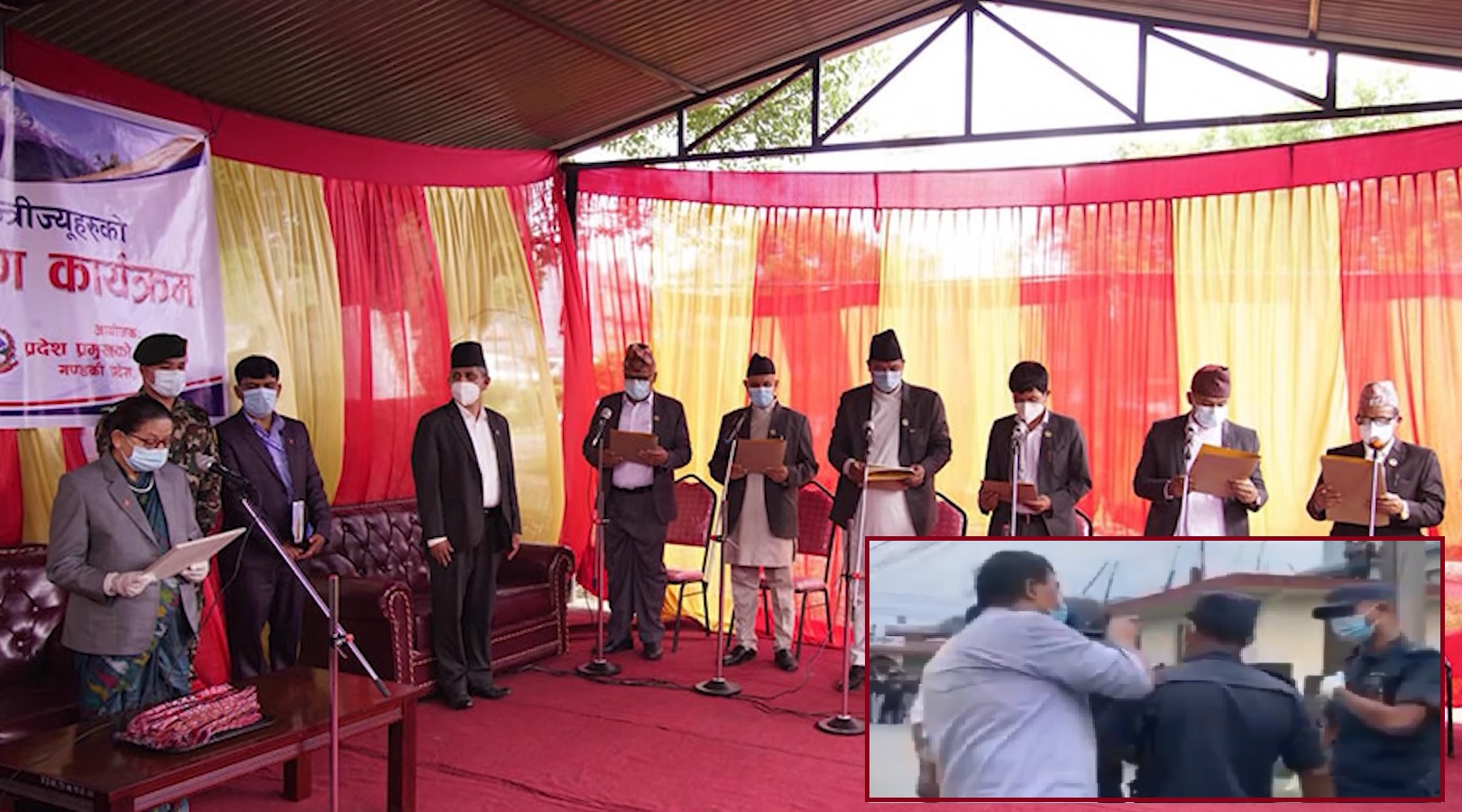 निषेधाज्ञामा भिड जम्मा पार्दै नवनियुक्त मुख्यमन्त्री कृष्णचन्द्र नेपालीलाई बधाई दिन पुगेका सांसद मेषलाल श्रेष्ठले इन्सपेक्टरलाई ‘हिसाब किताब ’ हुन्छ भन्दै धम्की दिएका थिए । उनलाई आज मुख्यमन्त्री नेपालीले शिक्षा, संस्कृति, विज्ञान तथा सामाजिक विकास मन्त्रालयको जिम्मेवारी दिएका छन् ।