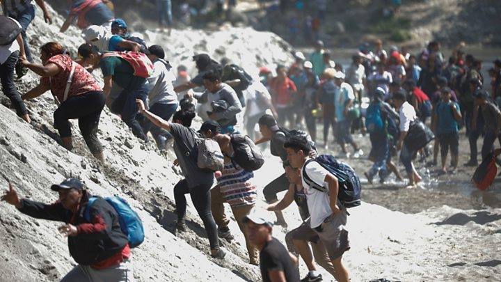 मेक्सिकोका अधिकारीहरूले जवाफ नदिएपछि उनीहरु जबर्जस्ती नदी तर्न थालेका थिए । यस मौसममा नदी त्यति गहिरो छैन । तर मेक्सिकोको सेनाले उनीहरुमाथि तितरबितर बनाउन र फिर्ता गर्न अश्रुग्यास प्रहार गरेको थियो ।