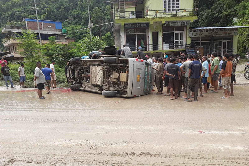 वर्षाका कारण सडक चिप्लो हुँदा माइक्रो बस दुर्घटनामा परेको धादिङ प्रहरीले जनाएको छ ।