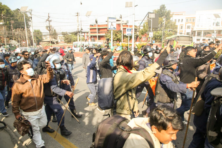उनीहरू अनुमति नलिइ आन्दोलन गर्न पुगेको भन्दै प्रहरीले अघि बढ्न दिएको छैन।