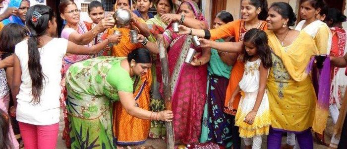 पर्वमा गाईको गोबरले लिपेर पवित्र बनाइएको चतुष्कोण वेदिभित्र गोबरकै मानव आकृति बनाएर धान, सिन्दूर, फूल, दुबो र पिठार (पानीमा घोलिएको अरवा चामलको पिठो) ले पूजा गर्ने गरिन्छ । विघ्ननाशक गणपतिको आह्वान गर्दै सुरु गरिने यो पूजाविधिमा प्रकृतिको आराधना भएको मैथिल विद्वान बताउँछन् ।