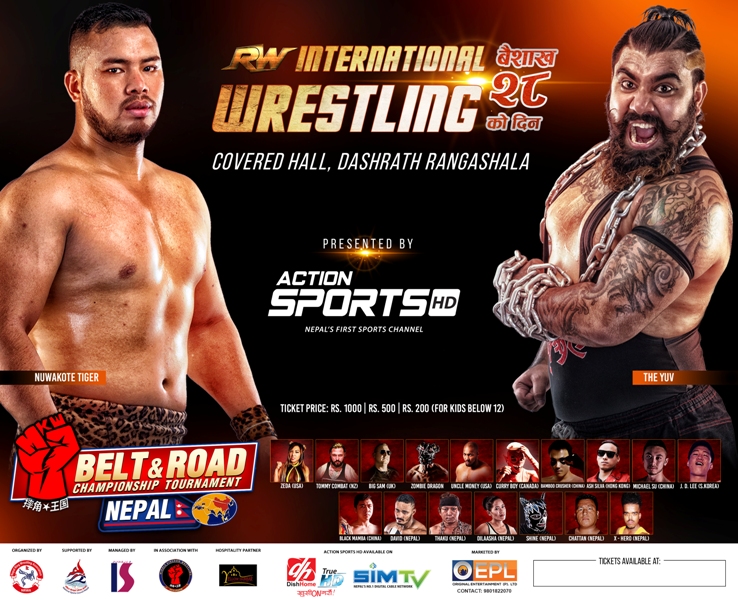 राष्ट्रिय खेलकुद परिषद्को विशेष सहयोग र एमकेडब्लु चीनको समन्वयनमा हुन लागेको यो प्रतियोगितामा नेपाल, चीन, अमेरिका, इग्ल्यान्ड, हङकङ, न्यूजिल्यान्डका खेलाडीहरुको सहभागीता रहेको छ । नेपालका चर्चित रेस्लर नुवाकोटे टाइगर, ठाकु, डेभिड, एक्स हिरो, साइन, चट्टान, दिलाशाले प्रतिस्पर्धा गर्ने छन् । त्यसैगरि अमेरिकाबाट एस सिल्भा, जेडा, जोम्बिइ ड्रागन र अंकल मनि छन् भने युकेका विग साम, चीनका बेम्बो क्रुसर, दा बाइ, ब्ल्याक माम्बा प्रतिस्पर्धा गर्ने छन् । त्यसैगरि हङकङका के सी, चियरम्यान एएल, मिचेल र न्यूजिल्यान्डका टोमी कम्ब्याट भिड्दैछन् । रेफ्रीमा प्रदिप पाण्डे, कुवरे केसी, विकाश थयोखड्का रहेका छन् ।