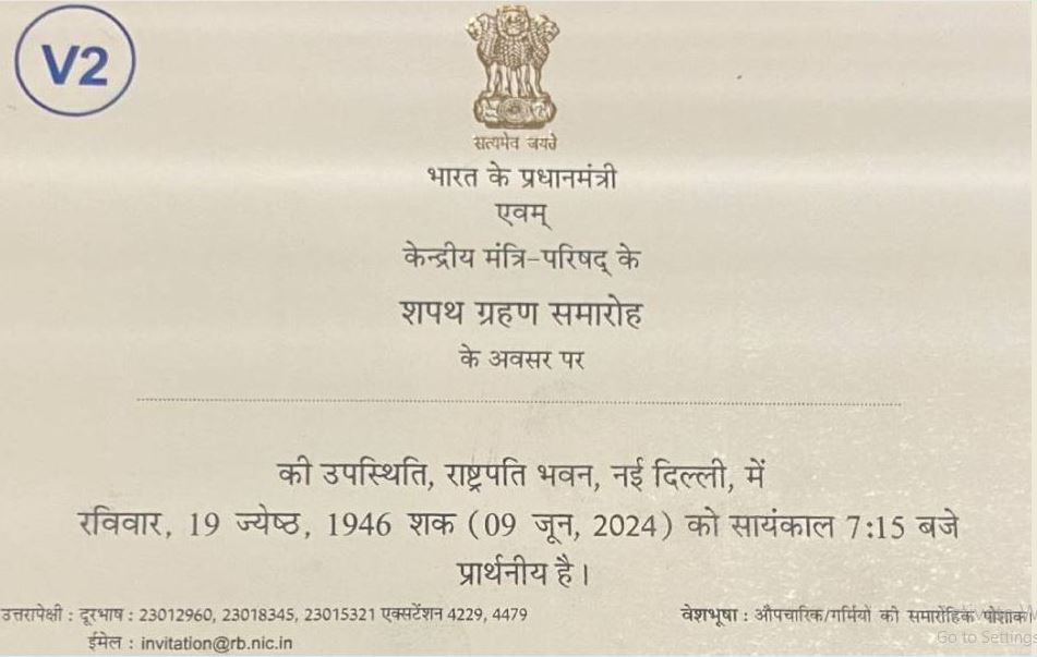 मोदीले आइतबार साँझ सवा सात बजे शपथ लिने कार्यक्रम तय भएको छ ।