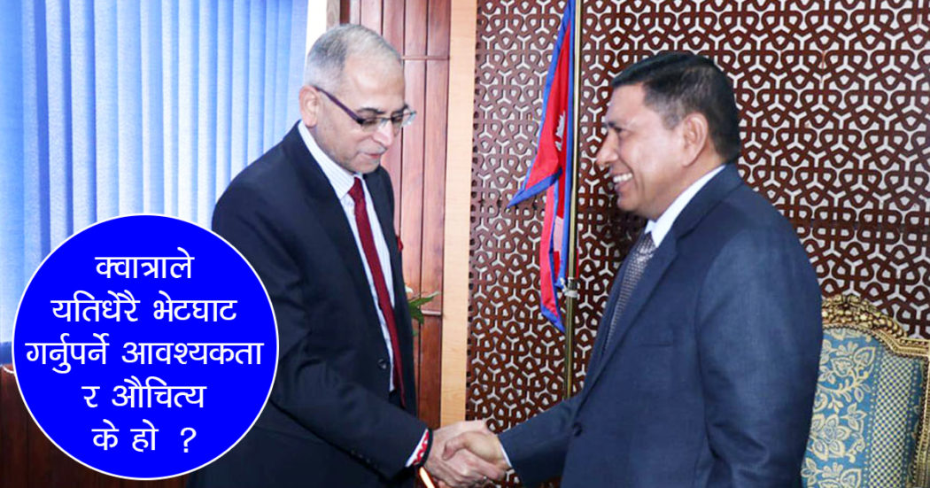 स्वयं मन्त्री श्रेष्ठले नै क्वात्रालाई भेट दिएर रेल्वे, आर्थिक समृद्धि, नेपाल–भारतबीच भएका सन्धिसम्झौता तथा भारतीय पक्षले लगानी गरेका आयोजनाबारे छलफल गरेका मन्त्रालयले जनाएको छ । तर मन्त्री श्रेष्ठका समकक्षी सचिव क्वात्रा होइनन् । परराष्ट्र सचिवस्तरीय बैठकमा दुवै देश सम्बन्धित सबै सम्बन्ध र परियोजनाबारे छलफल भइसकेको थियो । विदेश सम्बन्ध परराष्ट्र मन्त्रालयमार्फत स्थापित गर्नुपर्ने मान्यता हुन्छ । यस्तो अवस्थामा मन्त्री र नेतालाई छुट्टाछुट्टै भेट्नुपर्ने के थियो ? समाचार र बाहिर आएका भेटघाट औपचारिक भेटघाट हुन्, क्वात्राले अनौपचारिक रूपमा होटलमा कति र को–कोसँग भेटघाट गरे भन्ने कुनै लेखाजोखा छैन ।